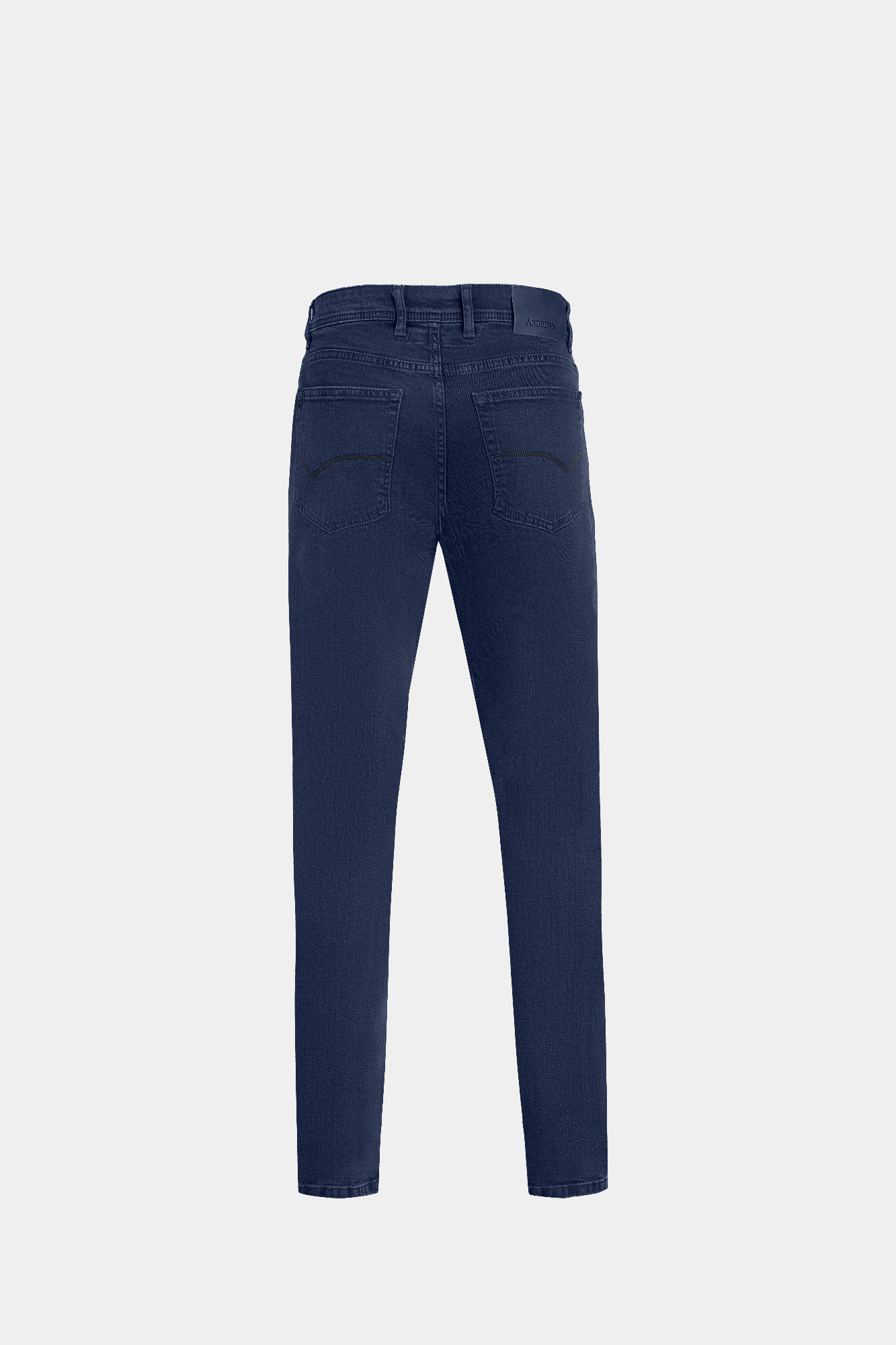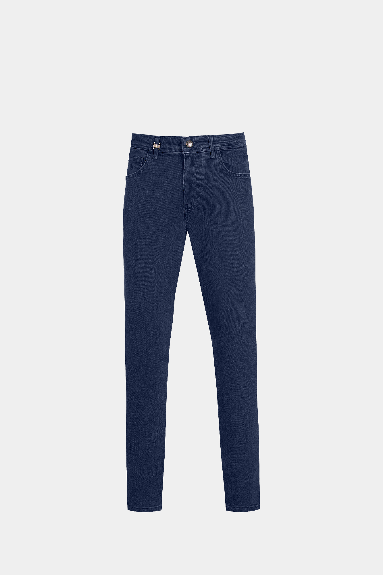 Сини дънки с метална пластина с лого в предната част. Вталена кройка, която придава елегантност на силуета. Мекият памук осигурява комфорт, а еластанът - пълна свобода на движенията. Могат да се съчетаят с широк спектър спортно-елегантни дрехи и обувки. Състав : 98 % памук и 2 % еластан