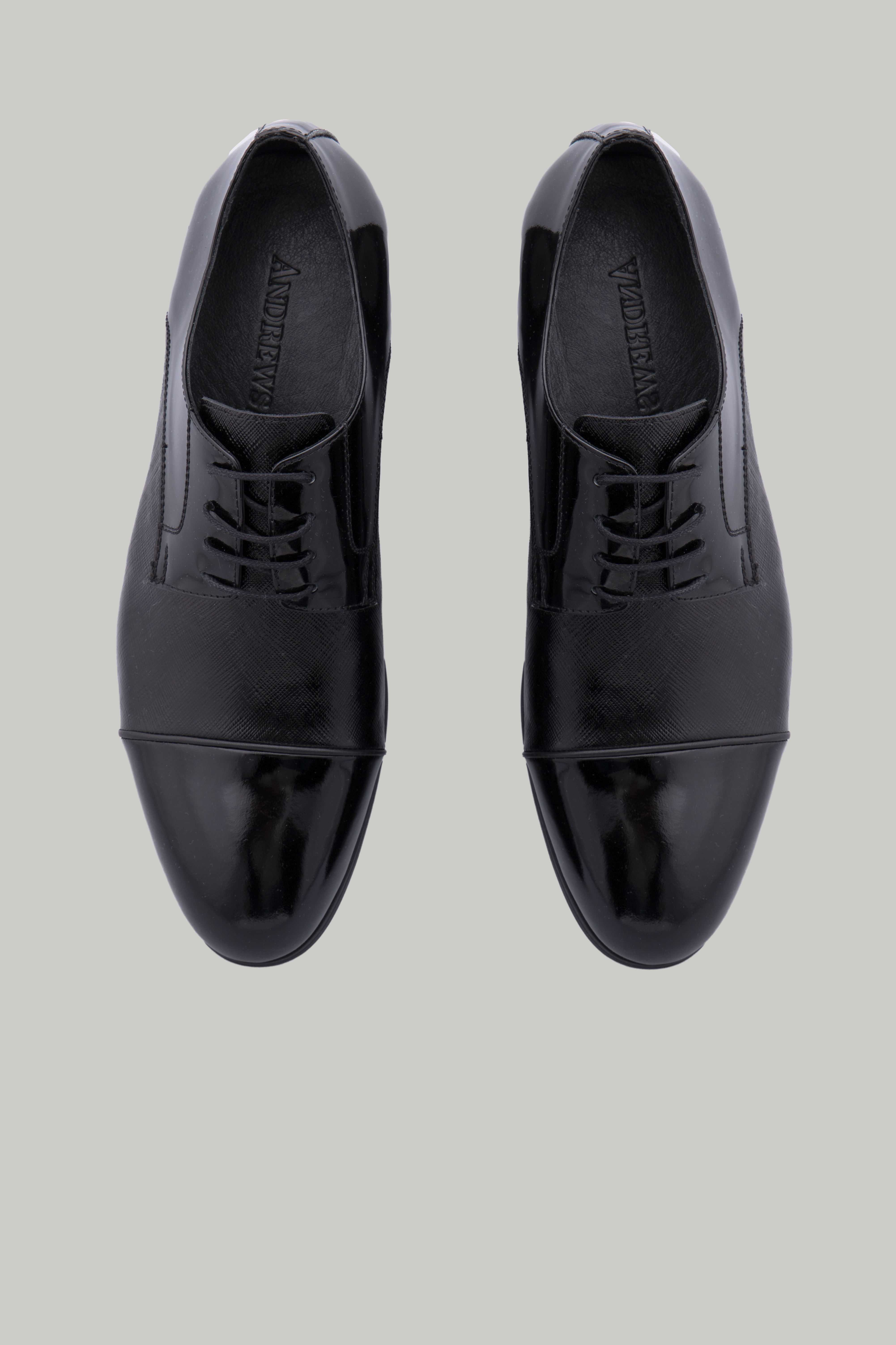 Официални мъжки обувки Ceremony 16034. Моделът е изработен от 100% естествена кожа. Обувките се предлагат в цвят черен лак и в размер 40-45.