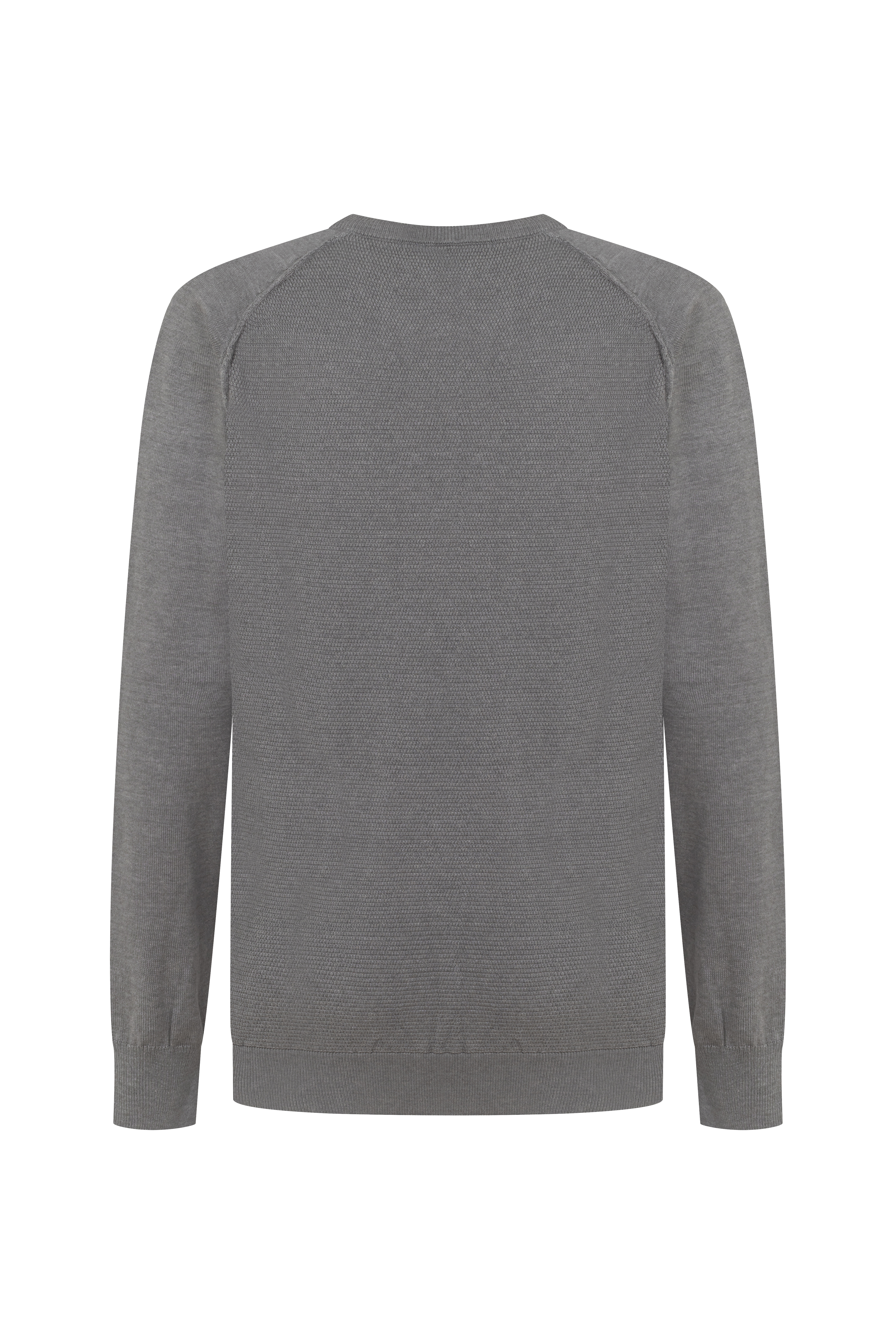 Модерен пуловер с обло деколте и фина структурна плетка. Декоративните шевове по раменете придават спортно-елегантен акцент. Комфортен и стилен избор за smart-casual визия през всеки сезон. Сезон: есен/зима. Състав: 50% памук, 50% акрил.
