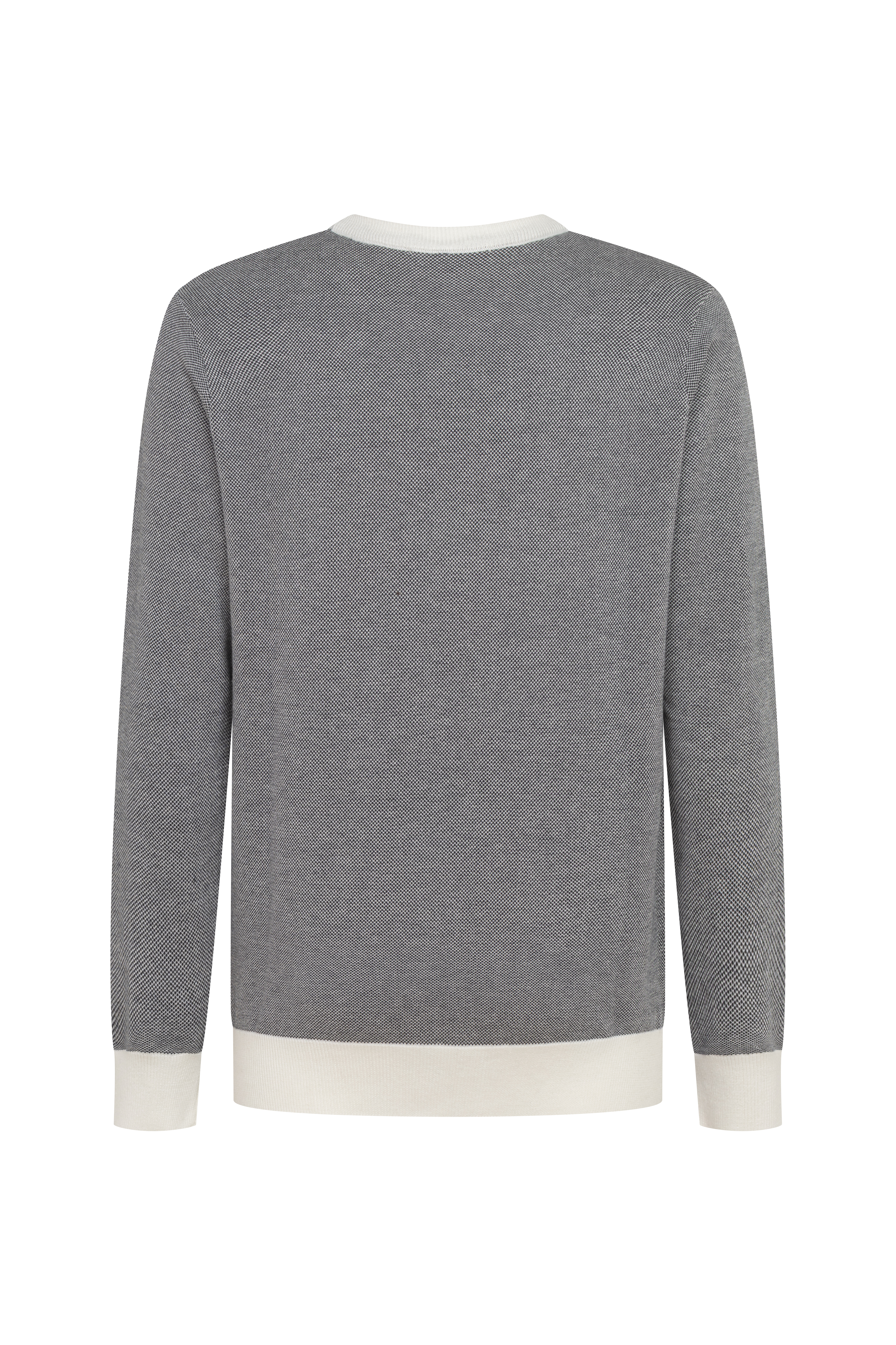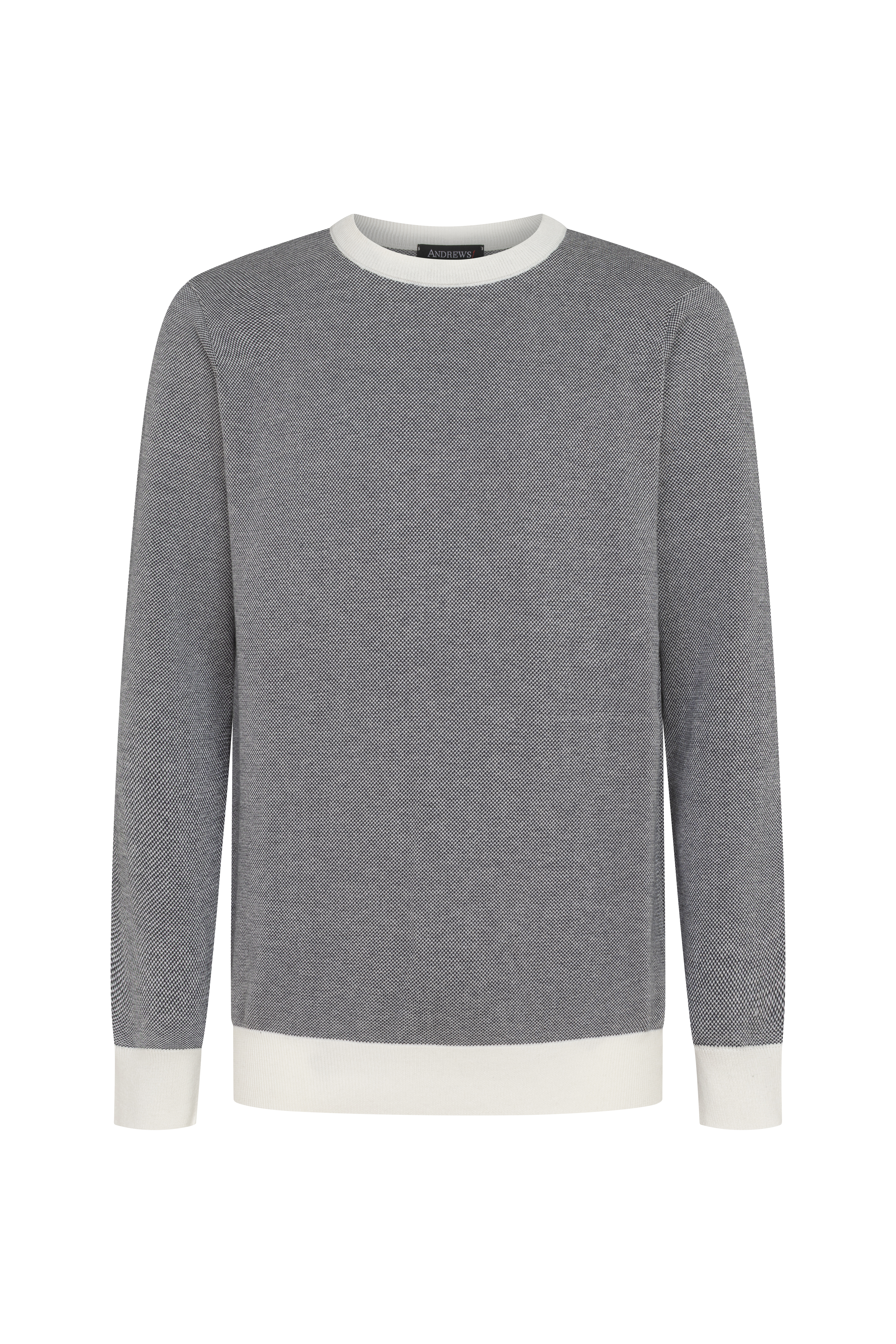 Модерен пуловер с обло деколте и контрастни детайли по яката, ръкавите и подгъва. Изработен от мека и лека плетка, която осигурява комфорт и стил. Перфектен избор за ежедневна визия с елегантен и съвременен характер. Сезон: есен/зима. Състав: 50% памук, 50% акрил.