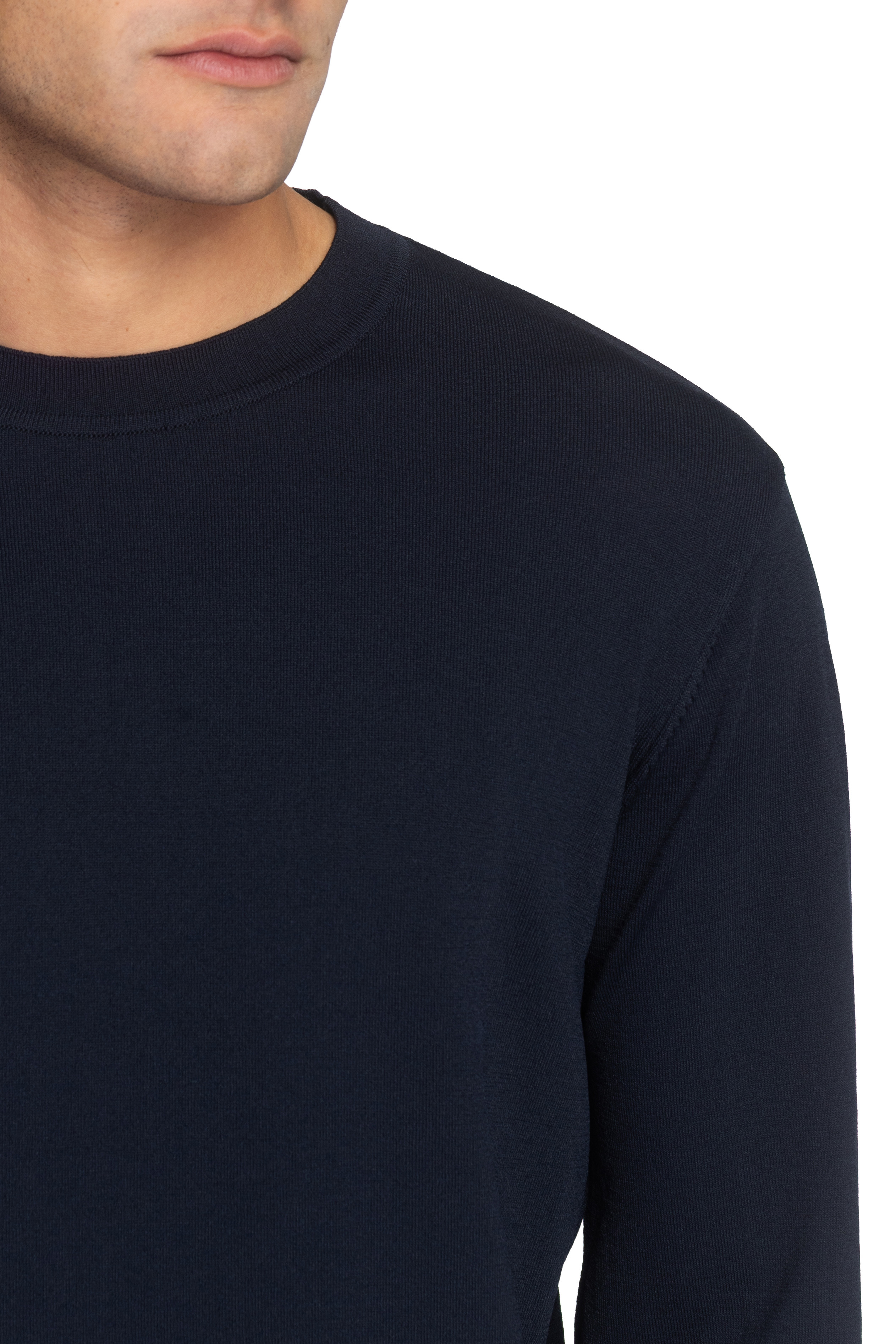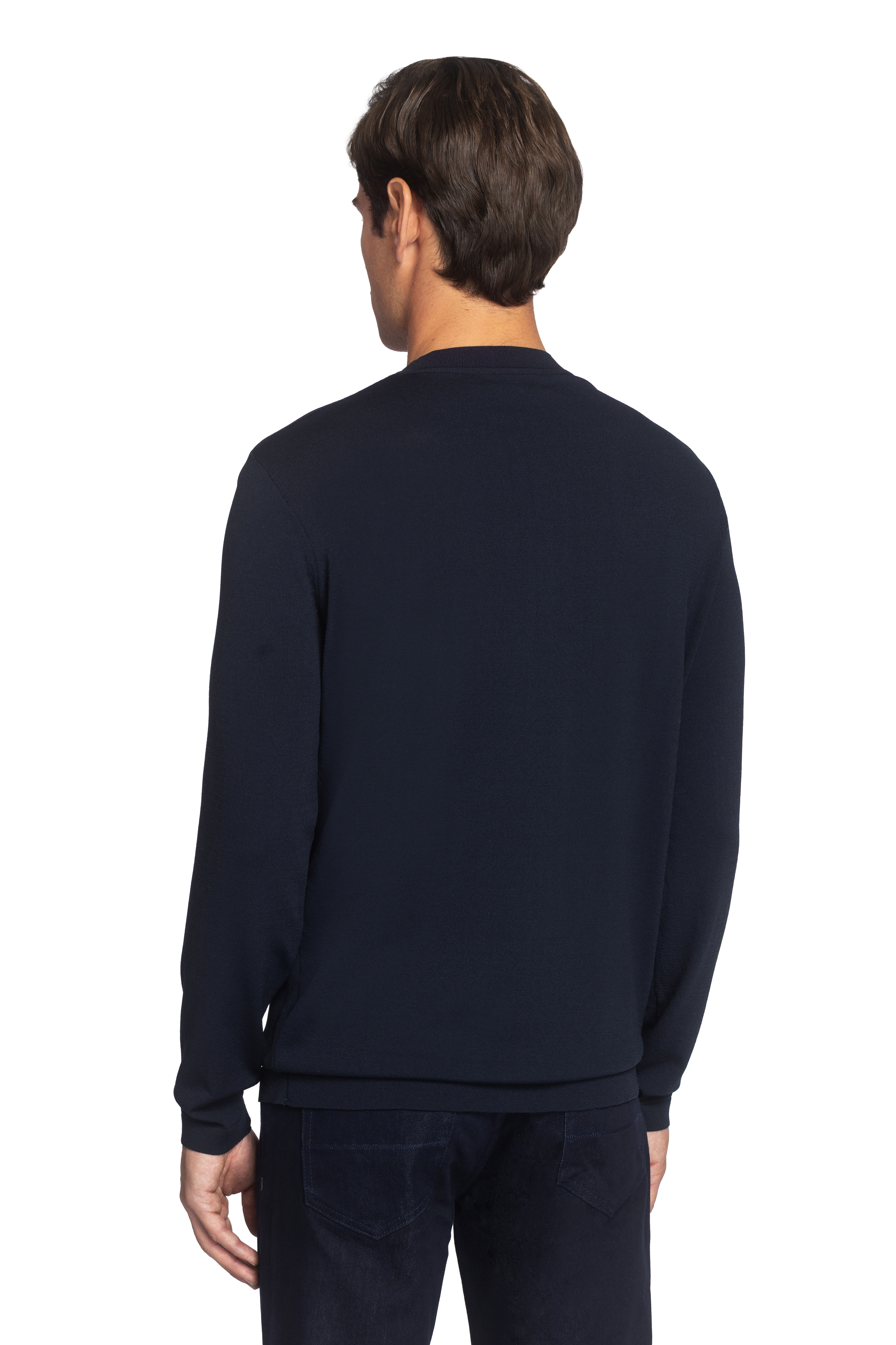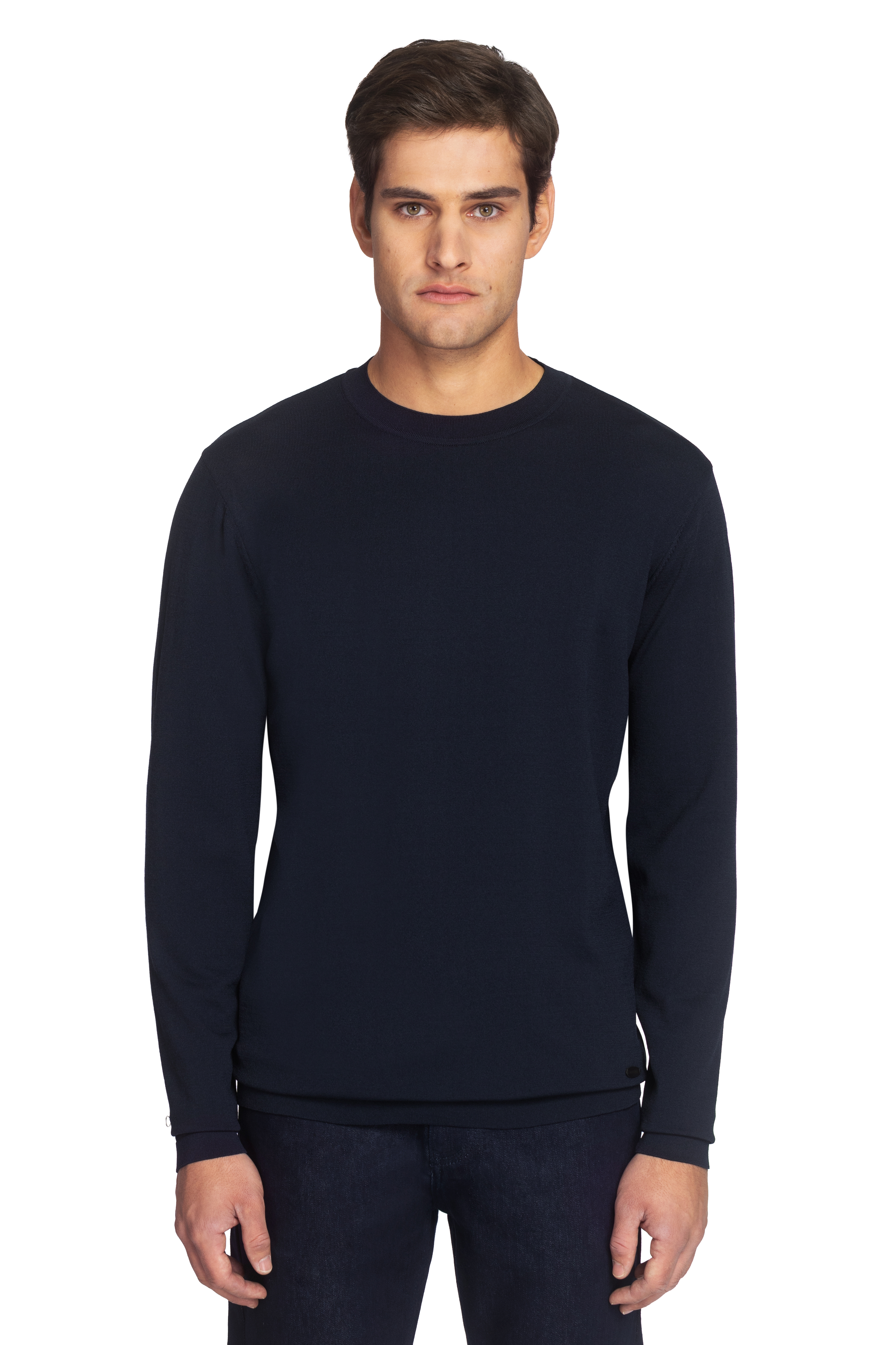 Класически син пуловер с обло деколте и изчистен дизайн. Изработен от мека и лека плетка, която осигурява комфорт и елегантна визия – подходящ за smart-casual стил през всеки сезон. Сезон: есен/зима. Състав: 65% вискоза, 35% полиамид.