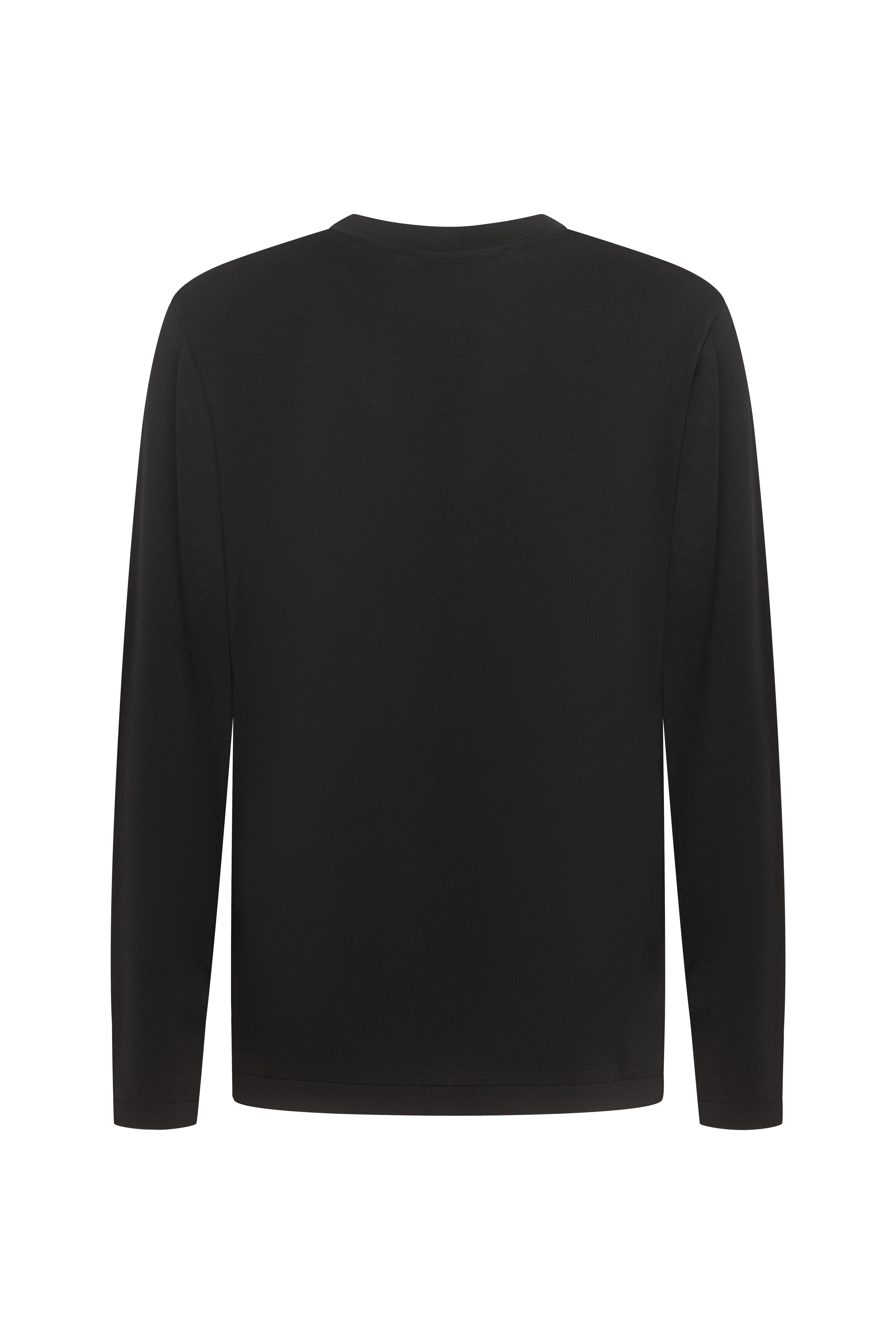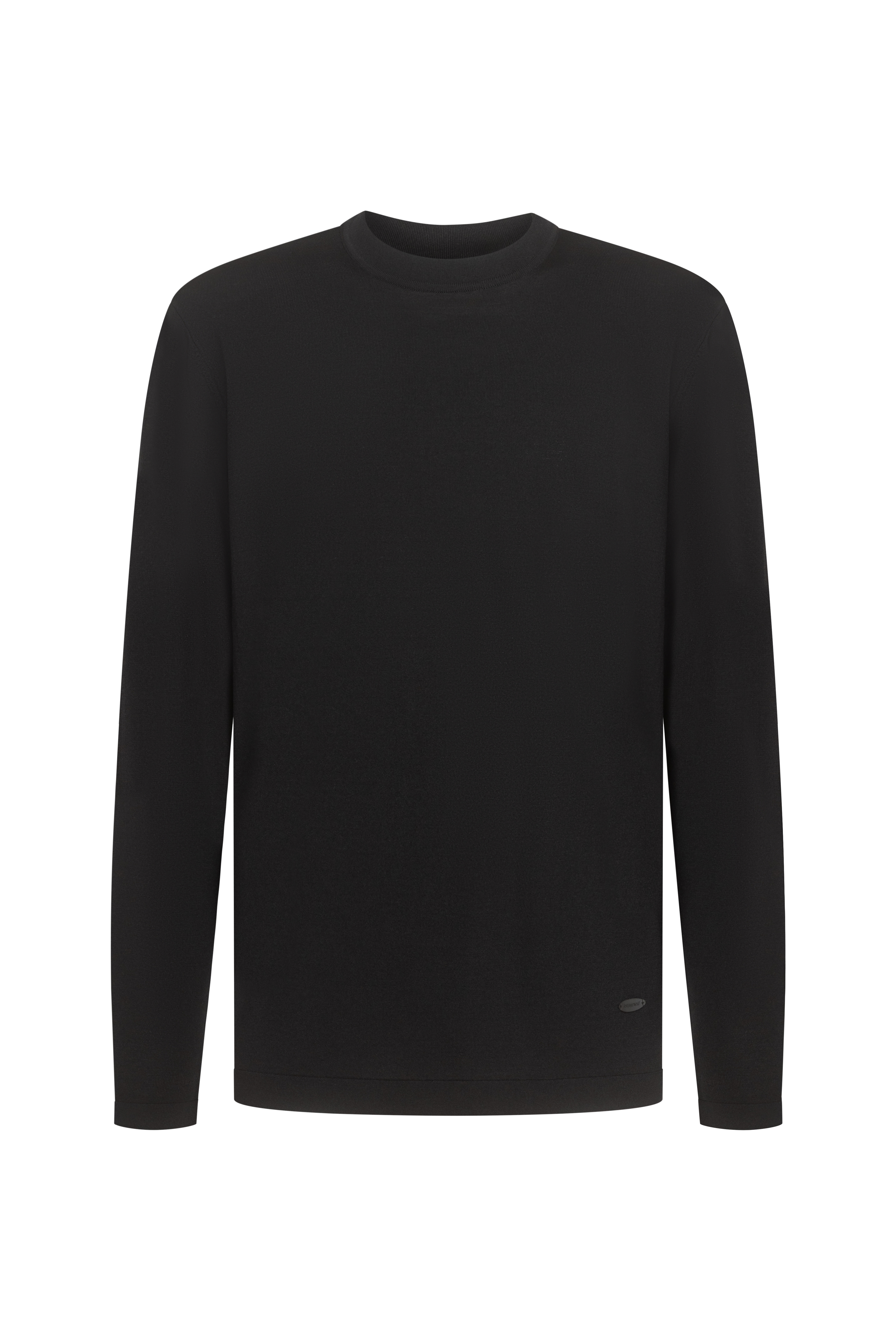 Класически черен пуловер с обло деколте и изчистен дизайн. Изработен от мека и лека плетка, която осигурява комфорт и елегантна визия – подходящ за smart-casual стил през всеки сезон. Сезон: есен/зима. Състав: 65% вискоза, 35% полиамид.