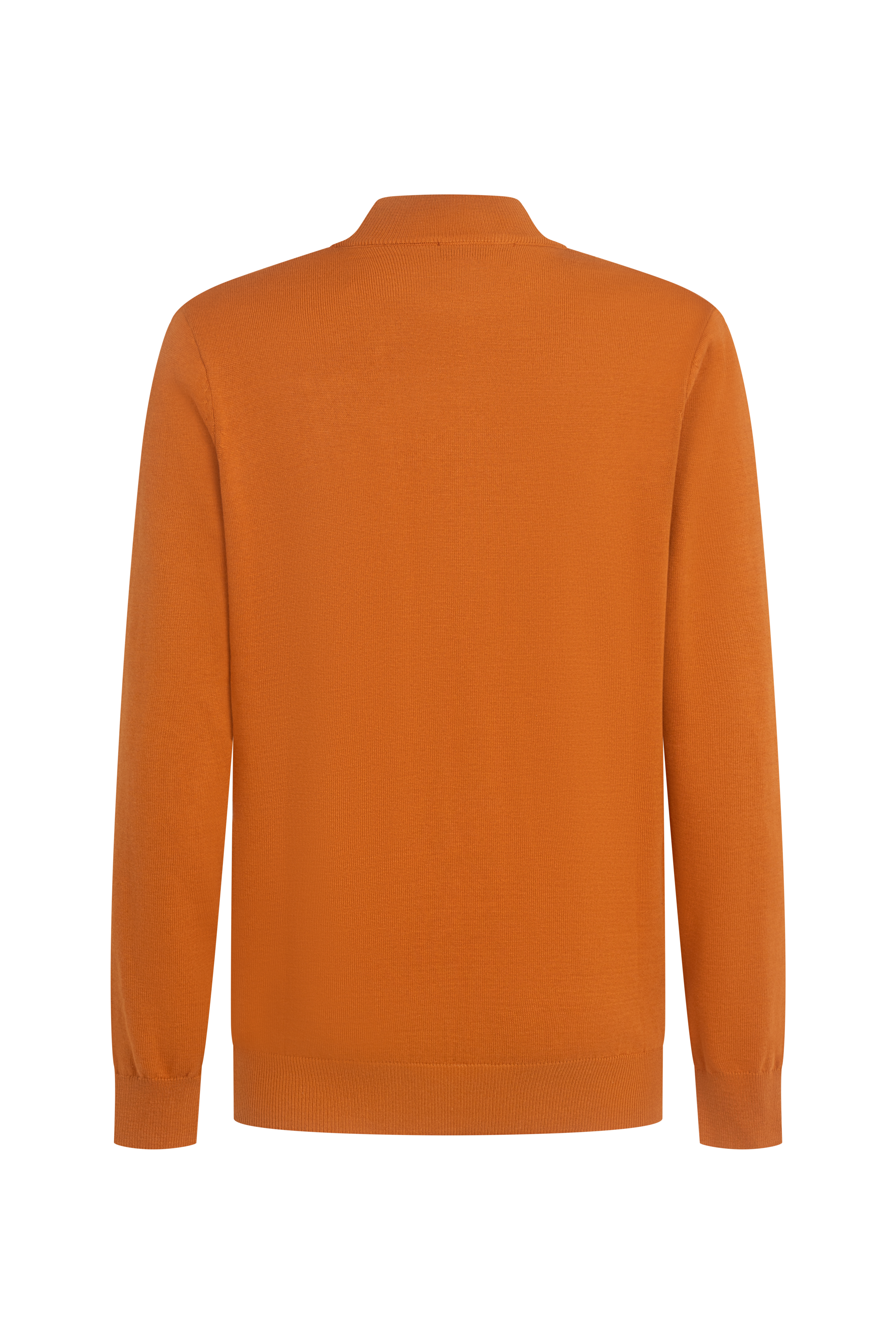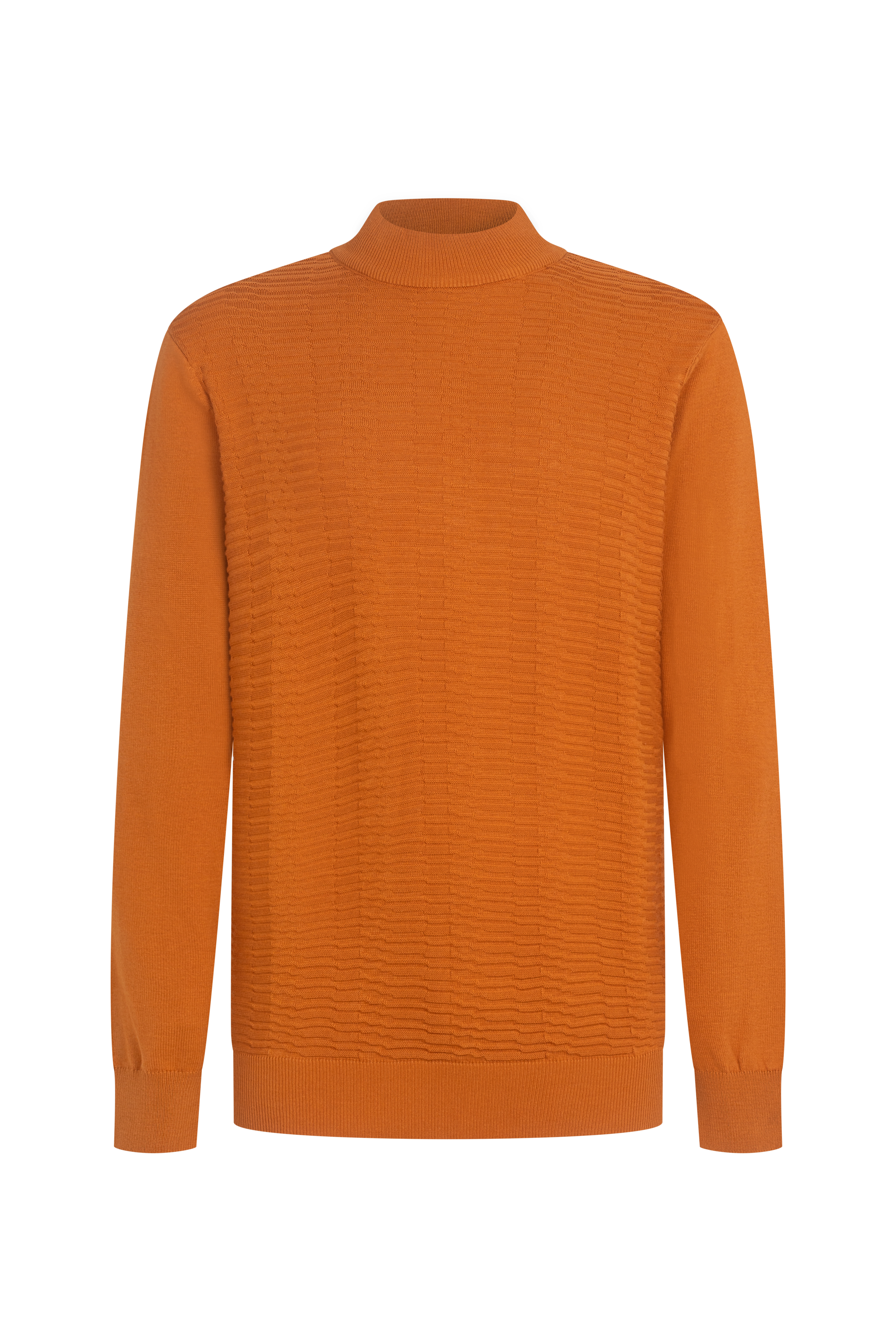 Стилен пуловер с висока яка и фина хоризонтална плетка. Меката материя осигурява комфорт и изискан вид – перфектен избор за smart-casual визия в офиса или ежедневието. Сезон: есен/зима. Състав: 50% памук, 50% акрил.