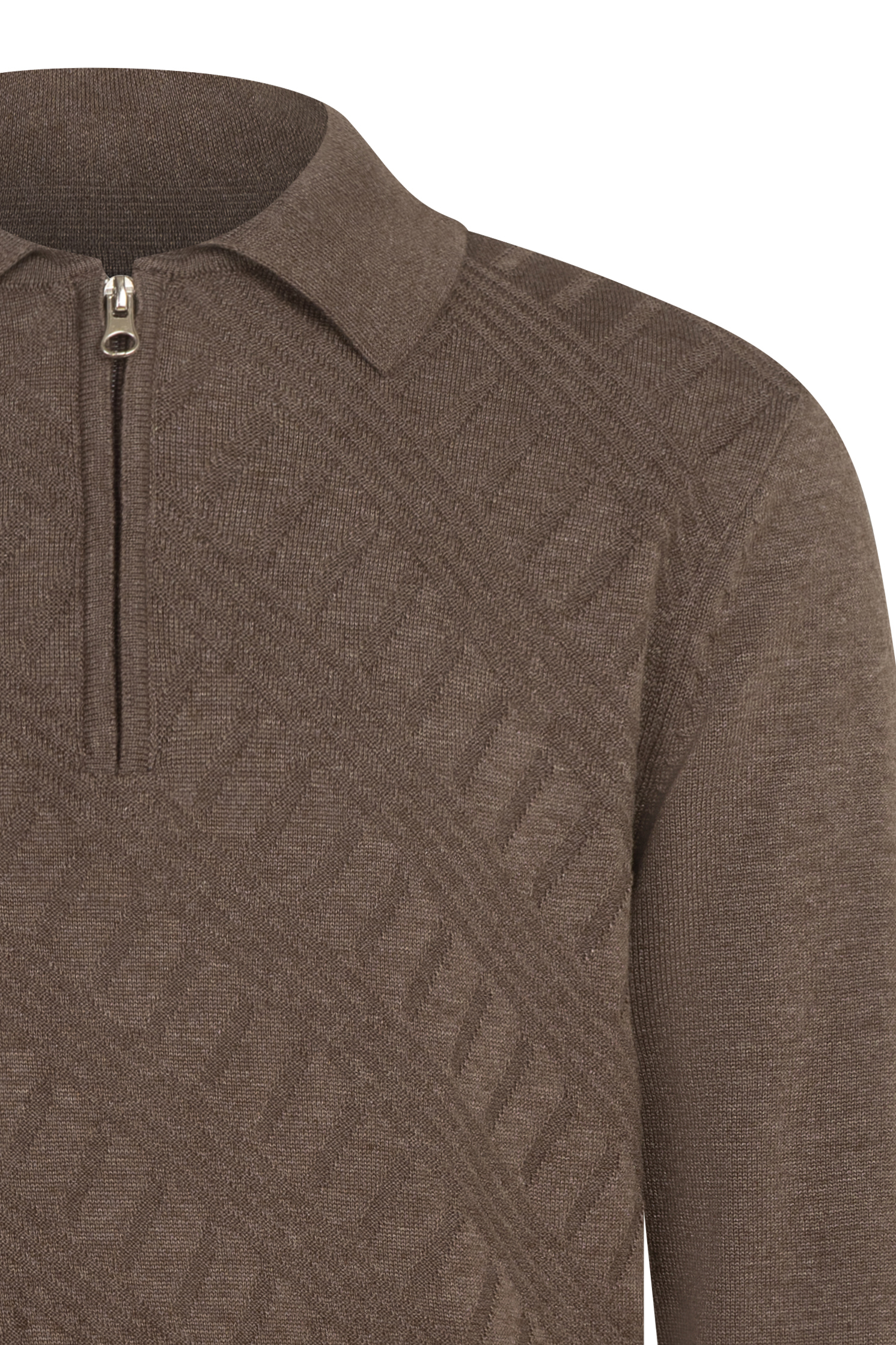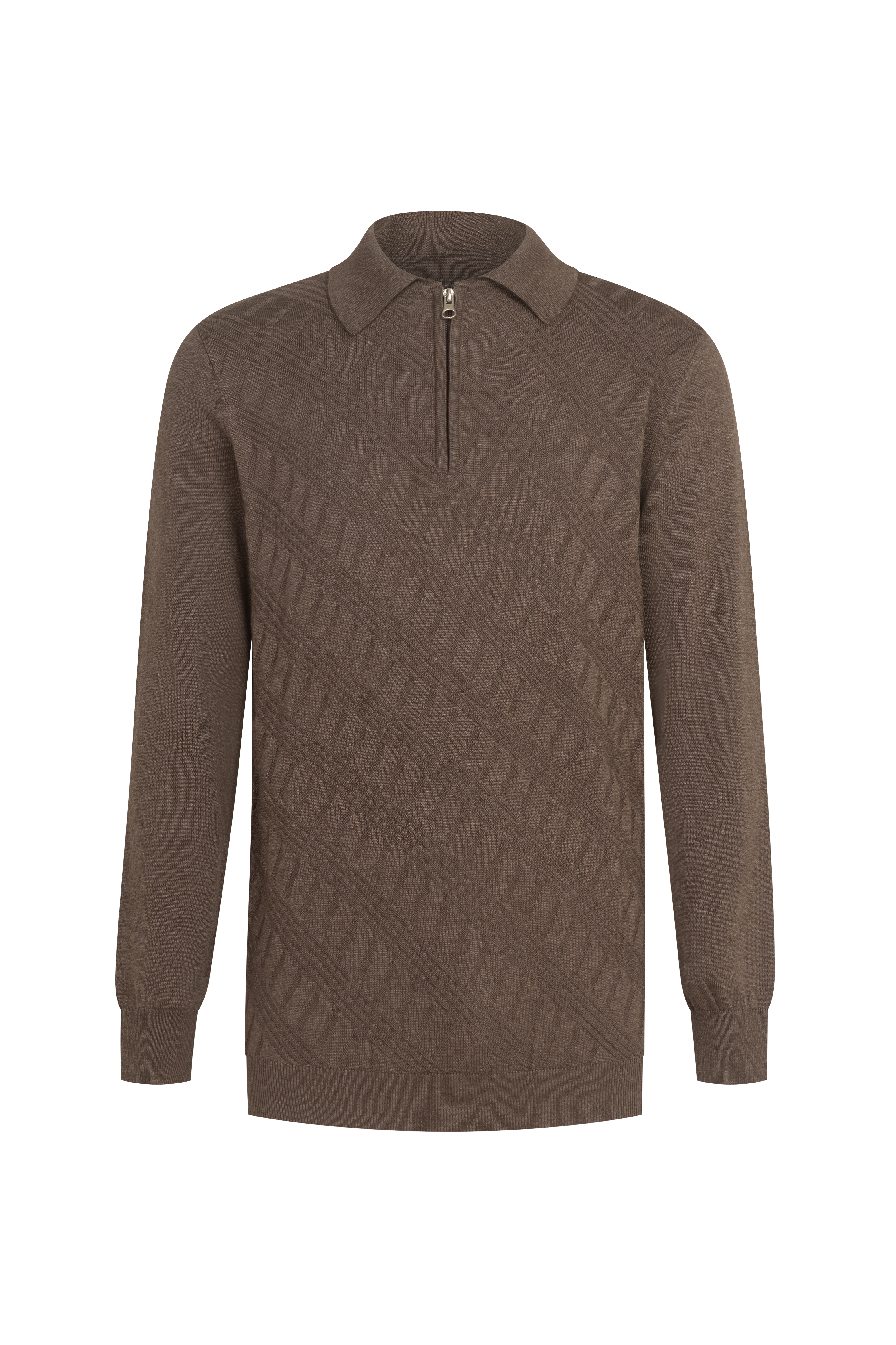 Елегантен пуловер с фина релефна плетка, къс цип, съчетава стил и комфорт. Подходящ за smart-casual визия – отлично се комбинира с риза, панталон или дънки. Сезон: есен/зима. Състав: 50% памук, 50% акрил.