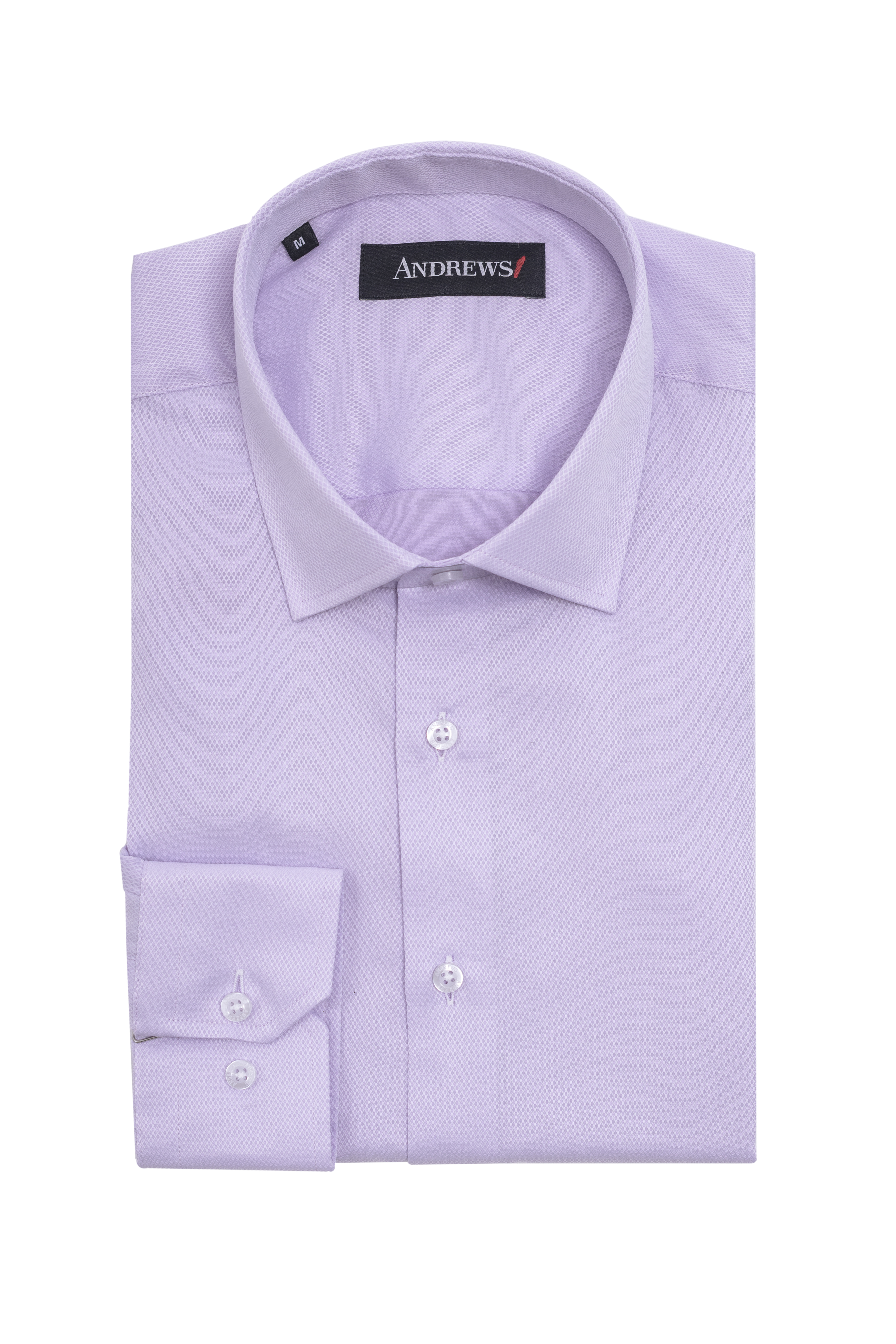 Бизнес риза от фино структуриран плат. Вталена кройка с по-широки рамене. Бледолилав цвят. Подходяща за сезон пролет / лято. Състав : 55 % памук, 45 % полиестер