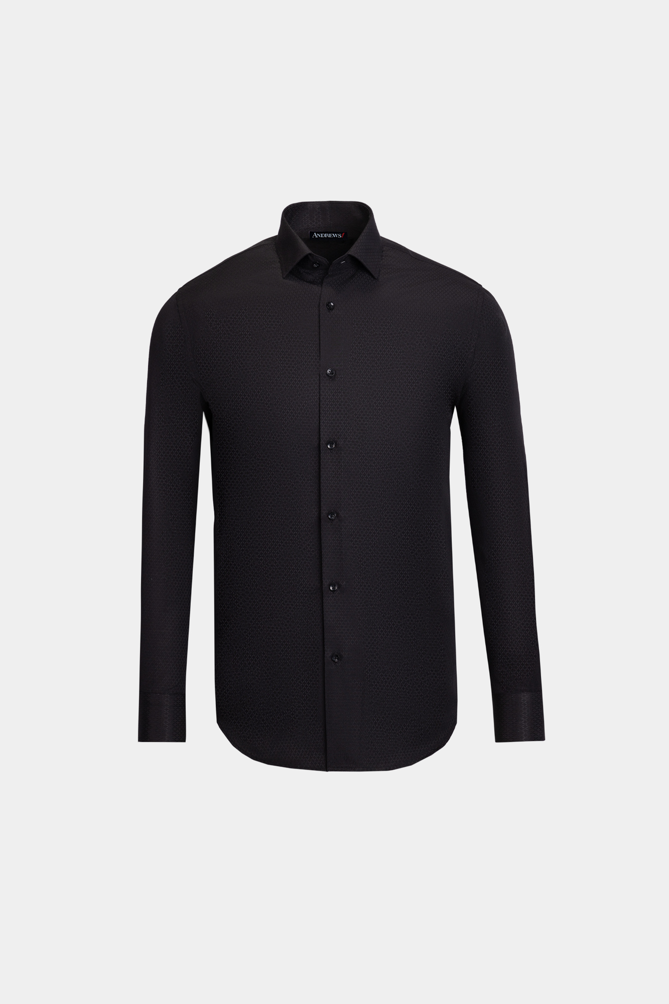 Елегантна риза, която съчетава бизнес стил с комфорт и функционалност. Вталена кройка с по-широки рамене. Подходяща за сезон есен/зима. Състав: 55% памук, 45% еластан.