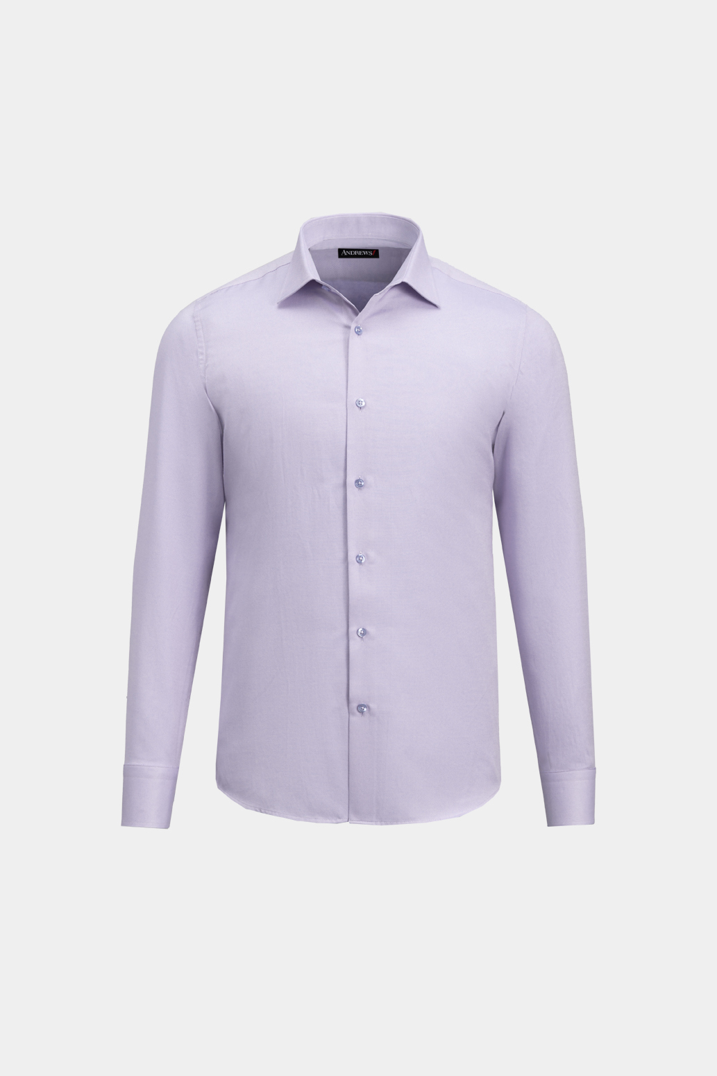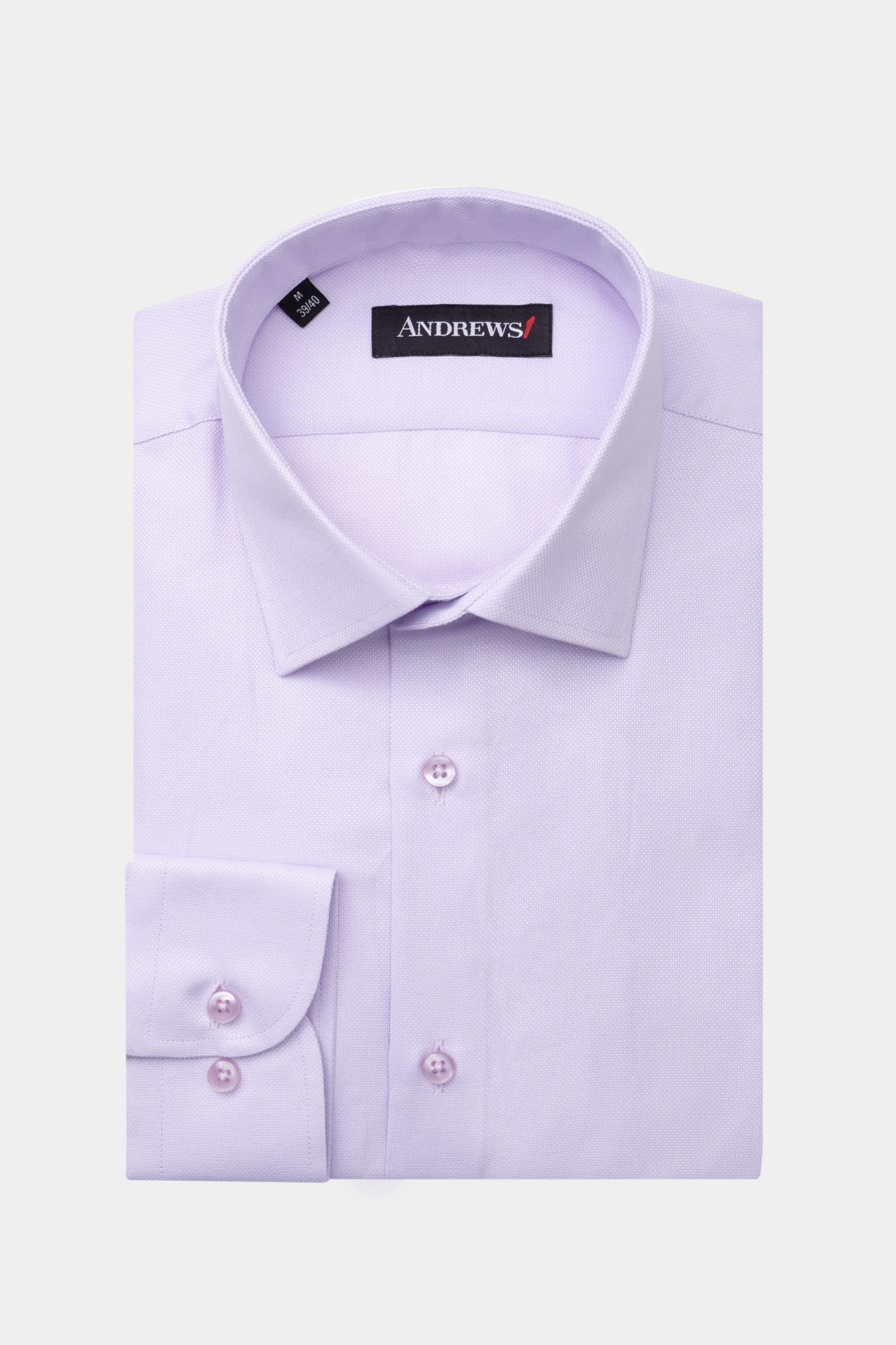 Светлолилава бизнес риза структуриран плат. Класическа, права кройка. Подходяща за носене целогодишно. Състав : 55 % памук, 45% полиестер