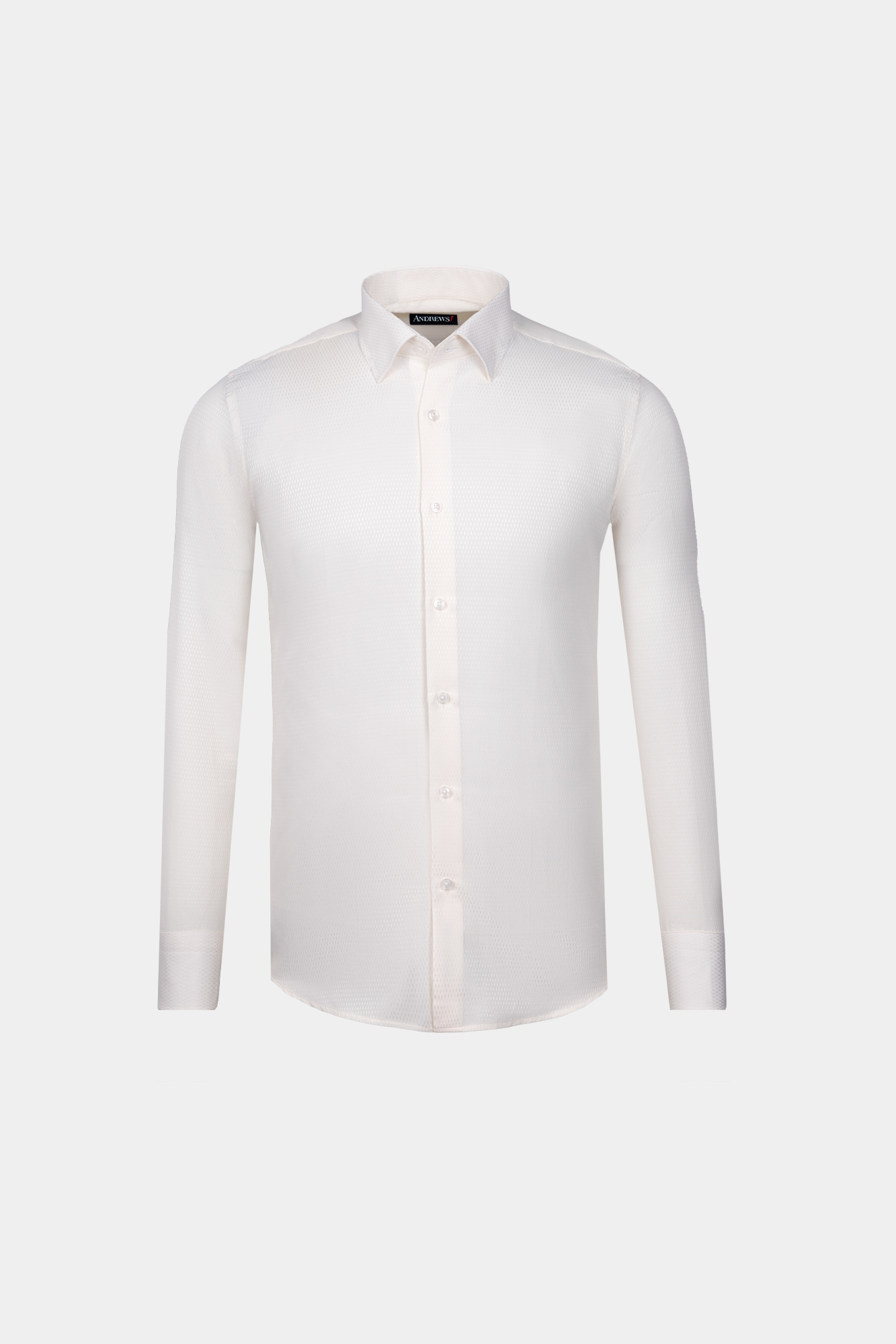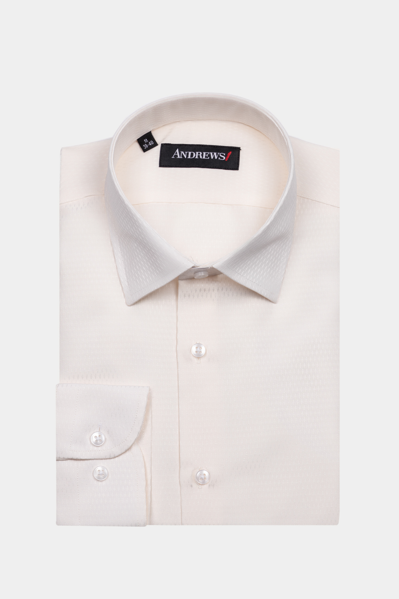 Класическа риза с много фин принт. Права кройка. Състав : 55% памук, 45% полиестер.