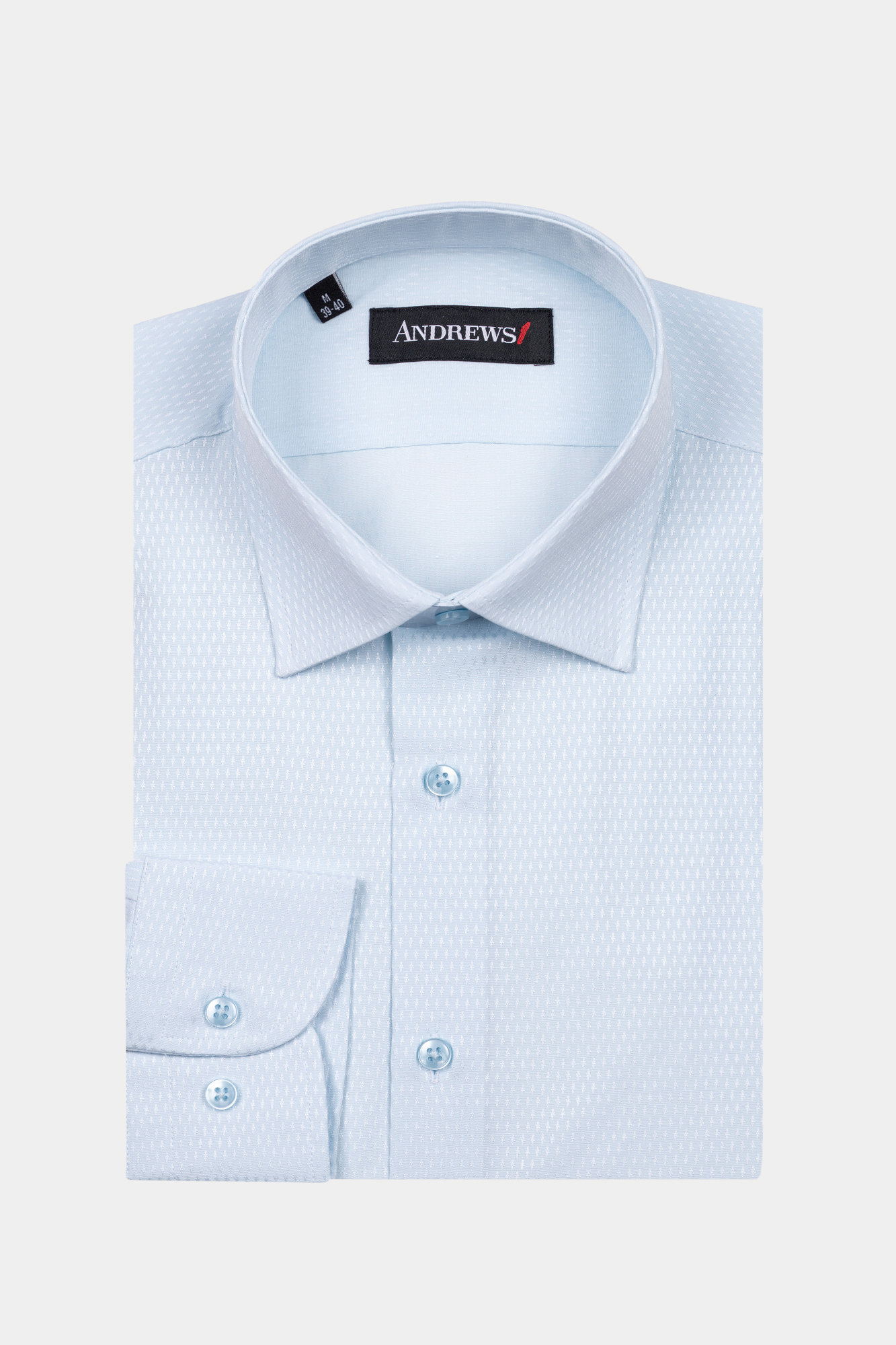 Класическа риза с много фин принт. Права кройка. Състав : 55% памук, 45% полиестер.