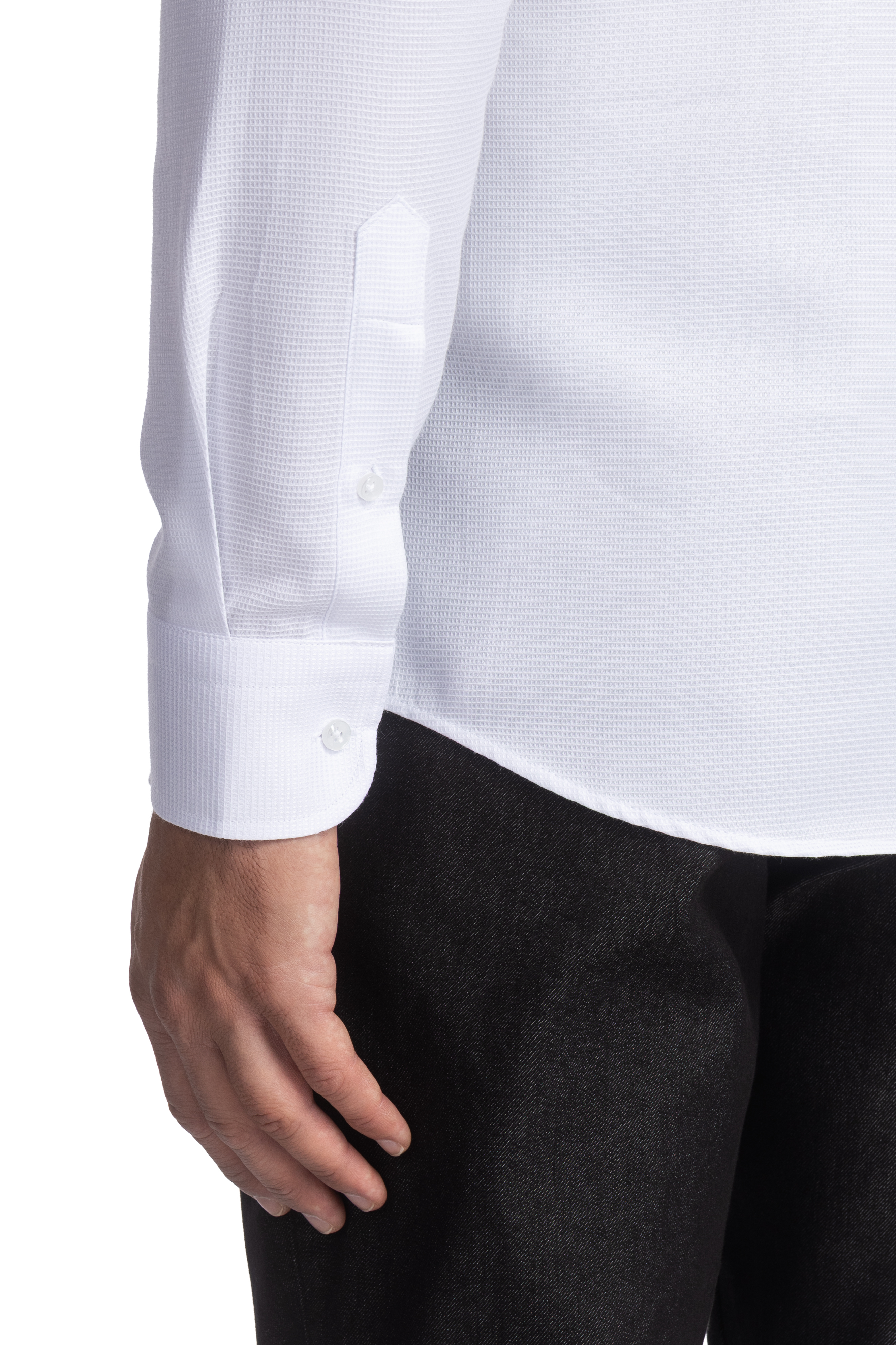Елегантна риза в класически бизнес стил с удобна, стандартна кройка. Подходяща за офис, делови срещи и официални поводи. Сезон есен/зима. Състав: 55% памук,45% полиестер.