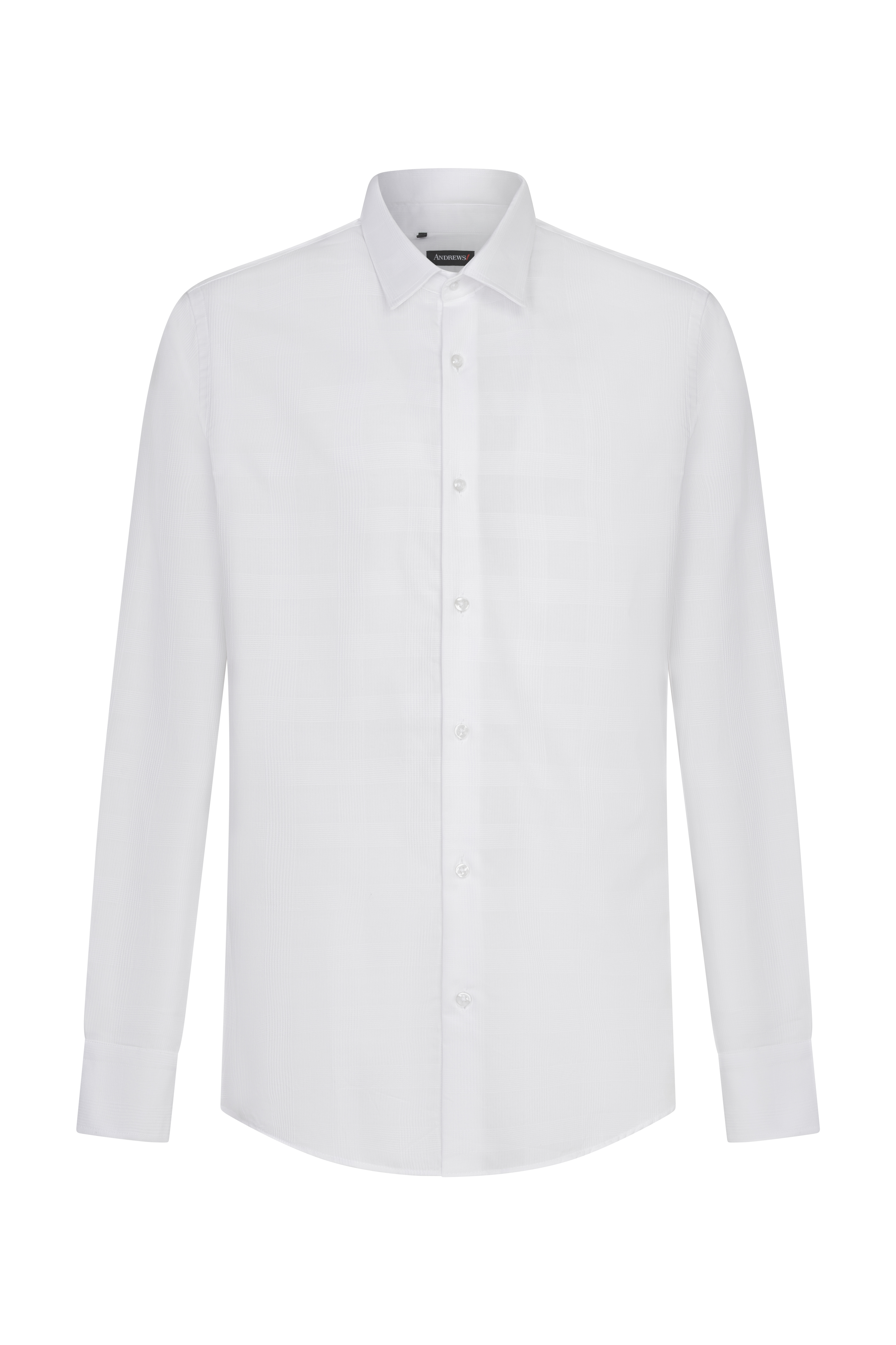 Елегантна риза в класически бизнес стил с удобна, стандартна кройка. Подходяща за офис, делови срещи и официални поводи. Сезон есен/зима. Състав: 100% памук.