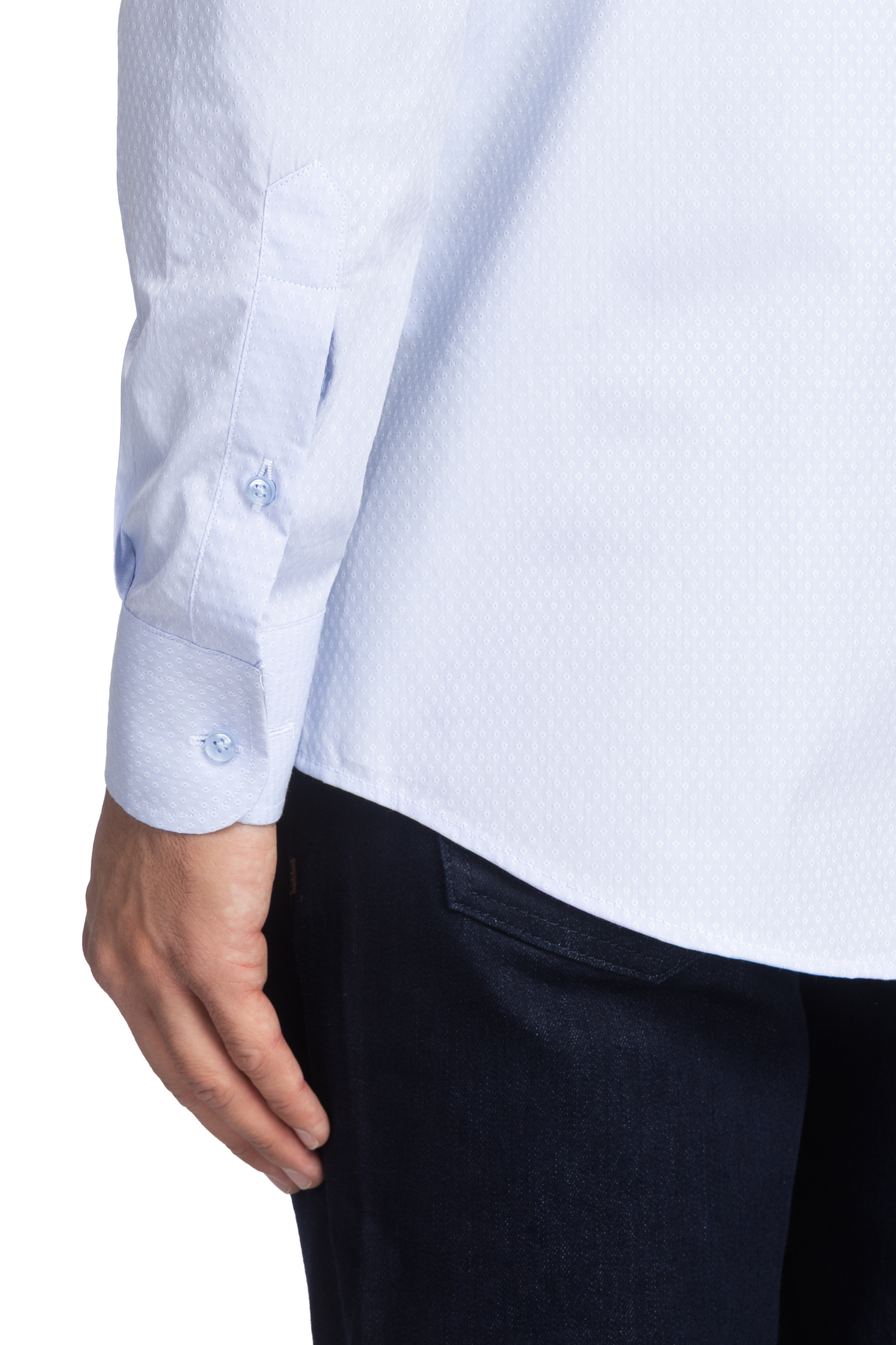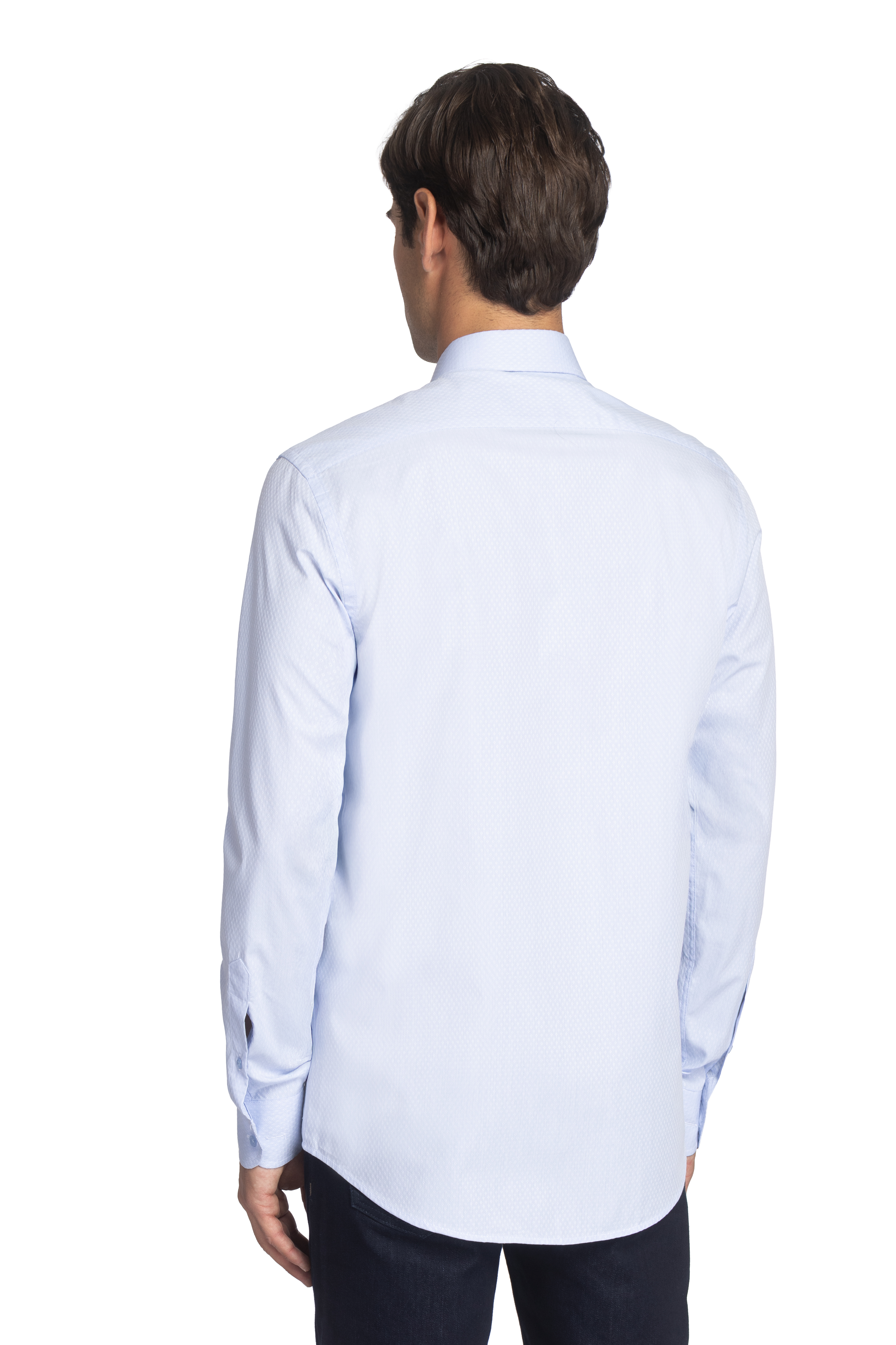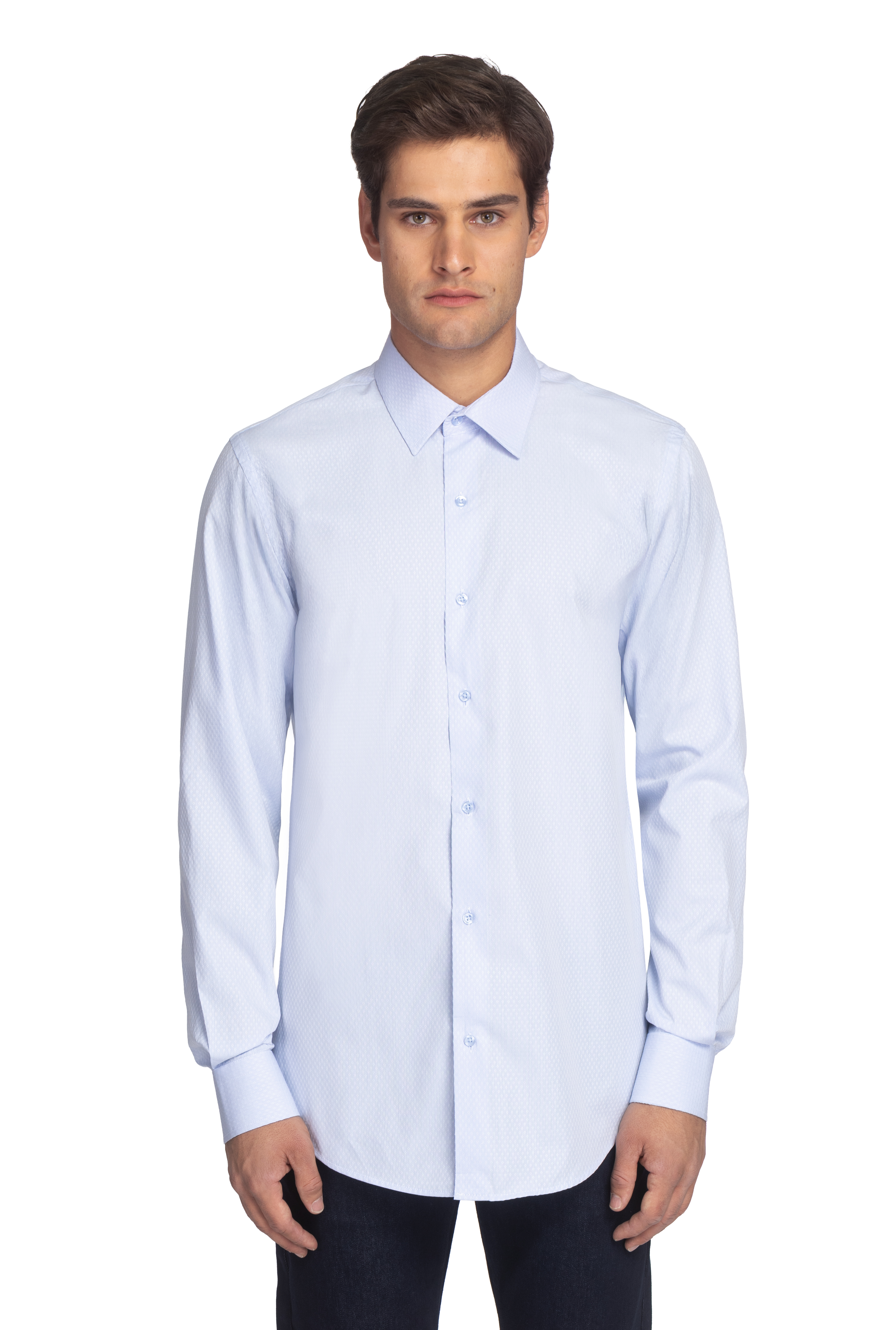 Елегантна риза в класически бизнес стил с удобна, стандартна кройка. Подходяща за офис, делови срещи и официални поводи. Сезон есен/зима. Състав: 100% памук.