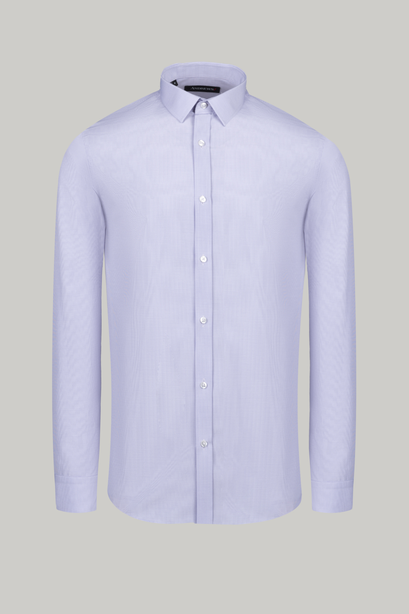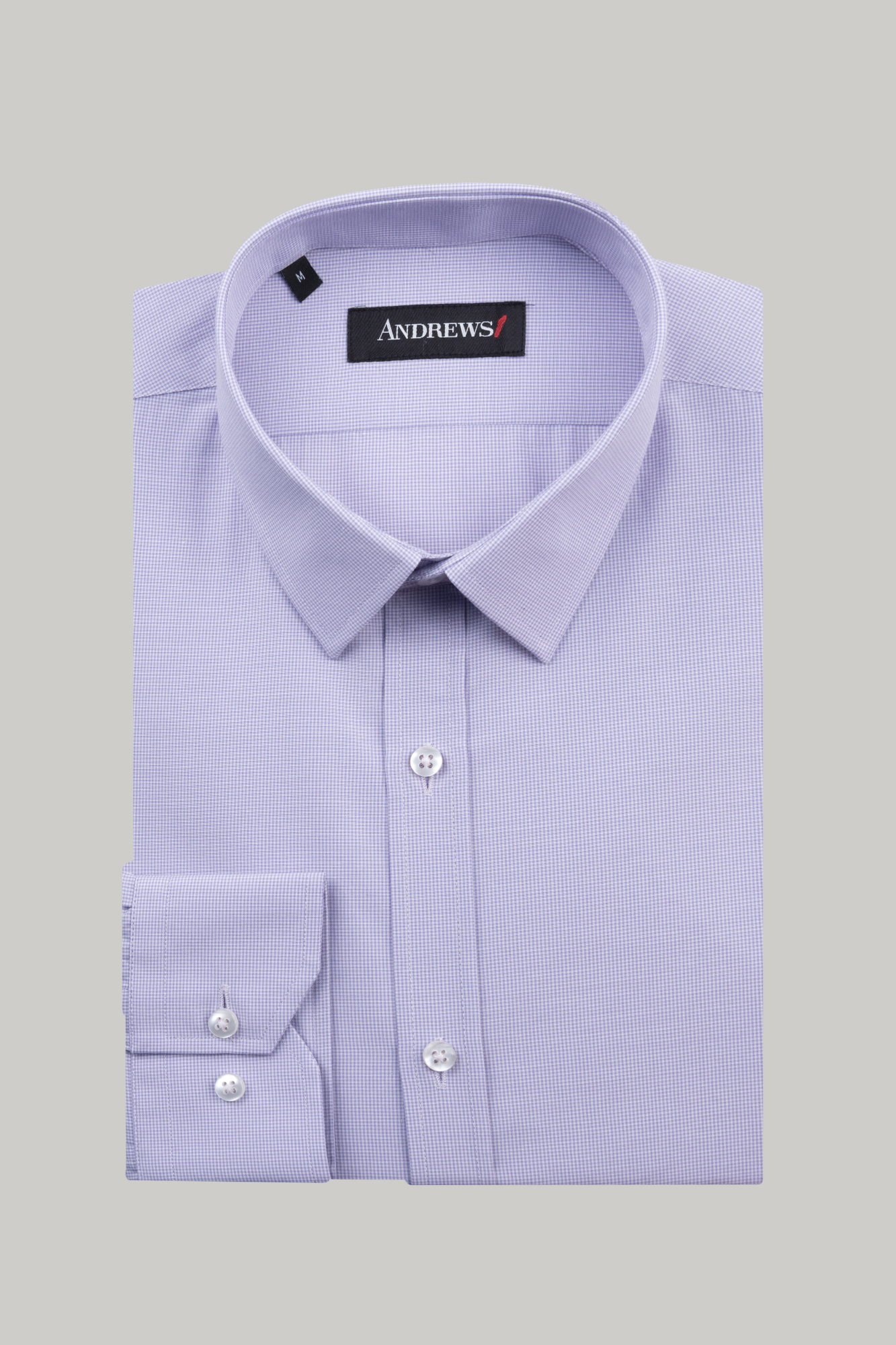 Мъжка бизнес риза на светлолилав пепит. Вталена кройка. Подходяща за сезон пролет / лято. Състав : 55 % памук, 45 % полиестер