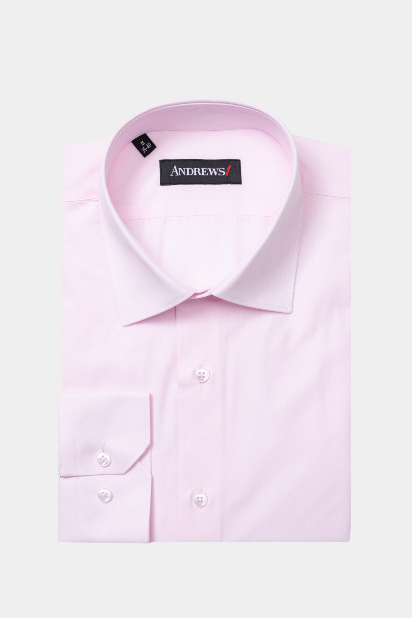 Мъжка бизнес риза в бледорозов цвят. Фина структура на плата. Вталена кройка. Подходяща за сезон пролет / лято. Състав : 55 % памук, 45 % полиестер