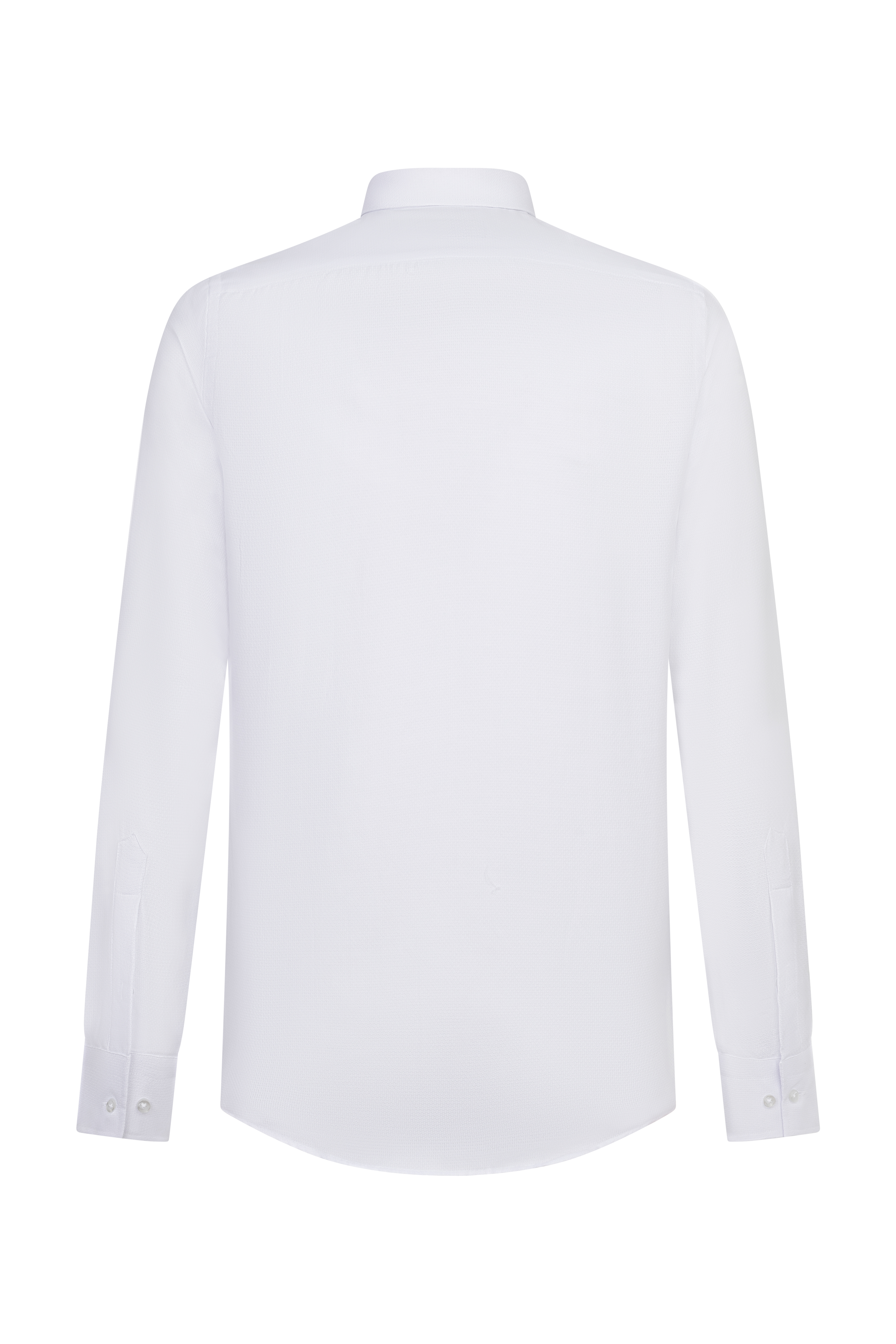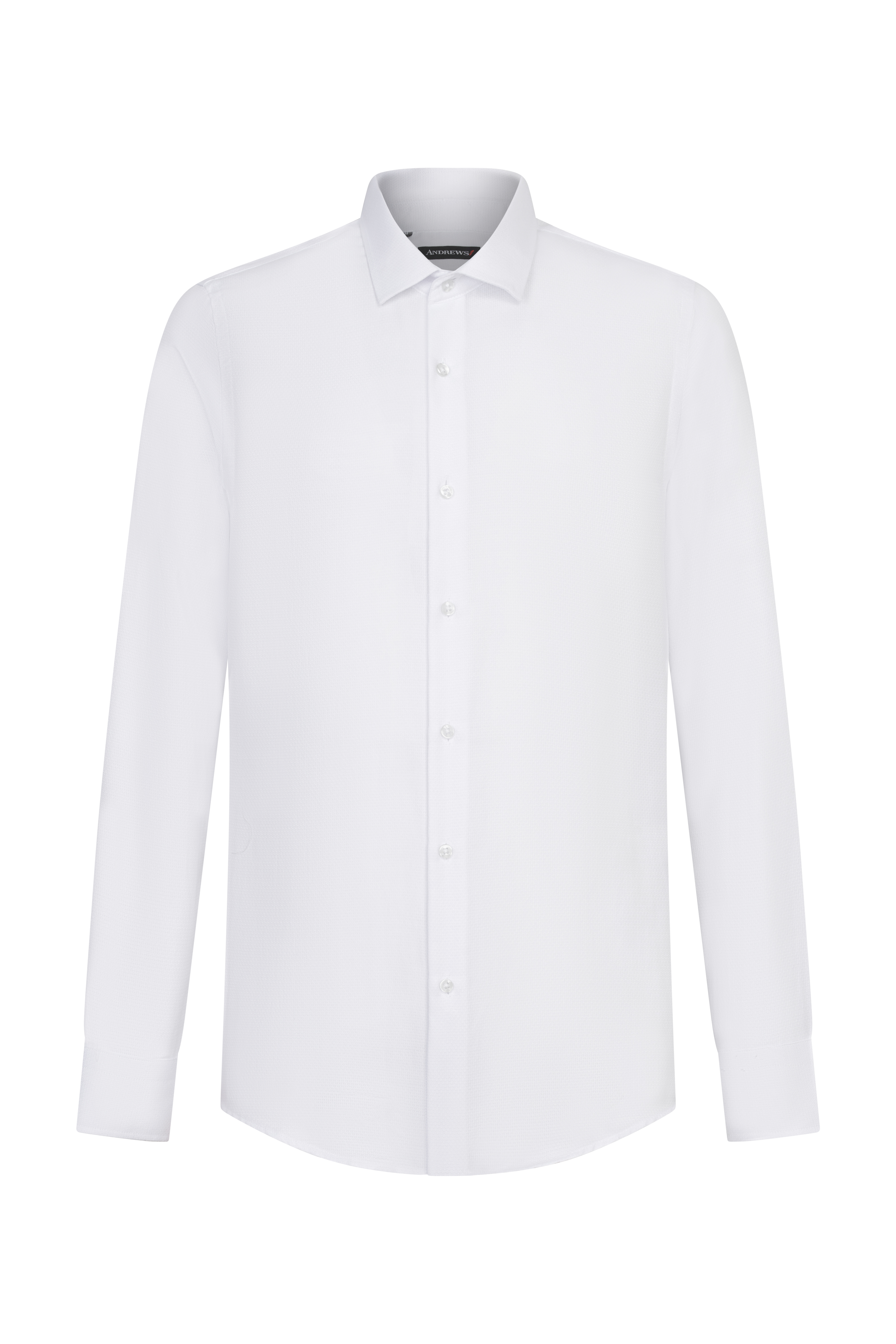 Елегантна риза в бизнес стил с вталена кройка. Подходяща за официални поводи, делови срещи и офис среда. Сезон есен/зима. Състав: 55% памук, 45% полиестер.