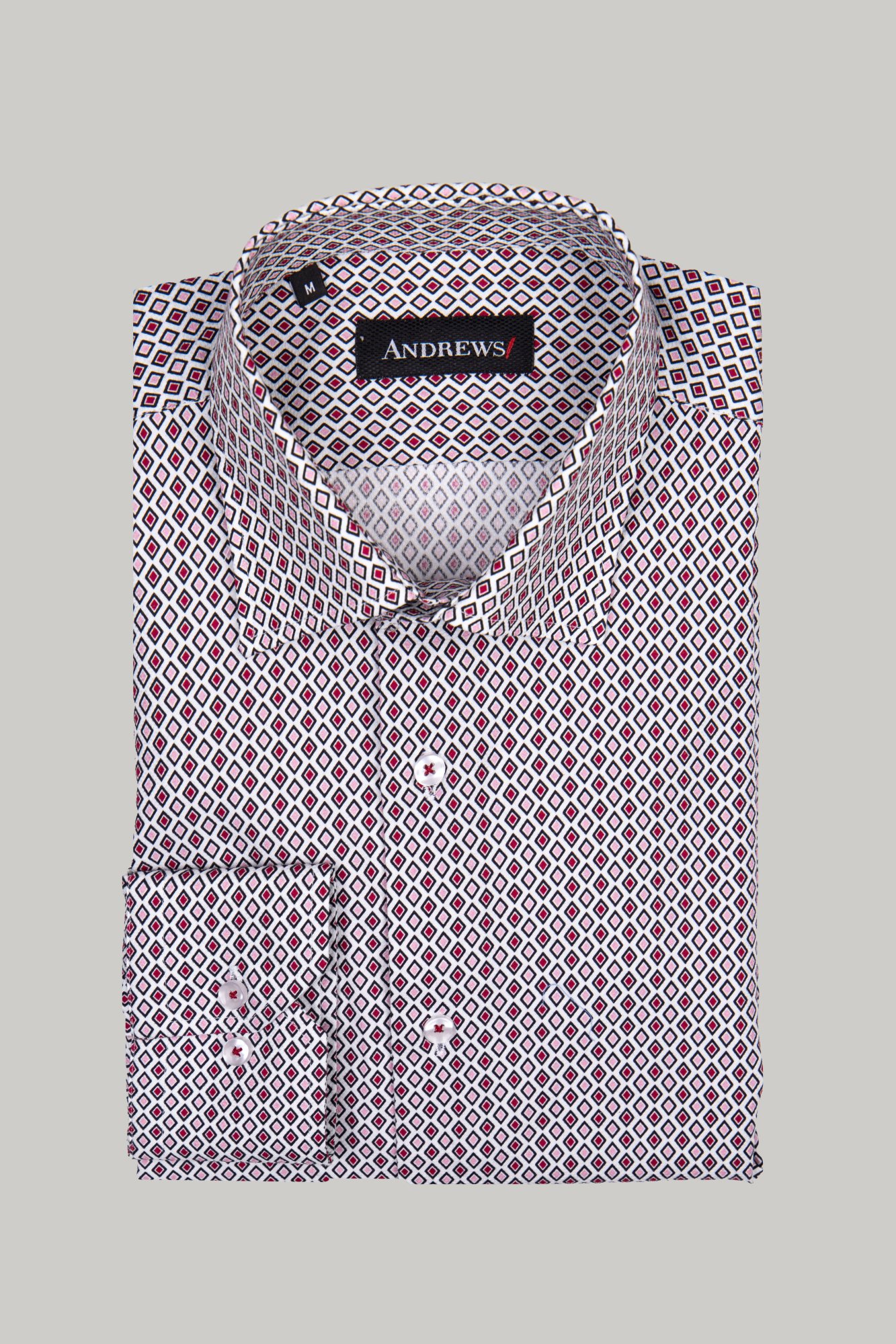 Elegant men's shirt Smart Regular 59040 in white / burgundy. Made of . Available sizes S, M, L, XL, XXL, XXXL.