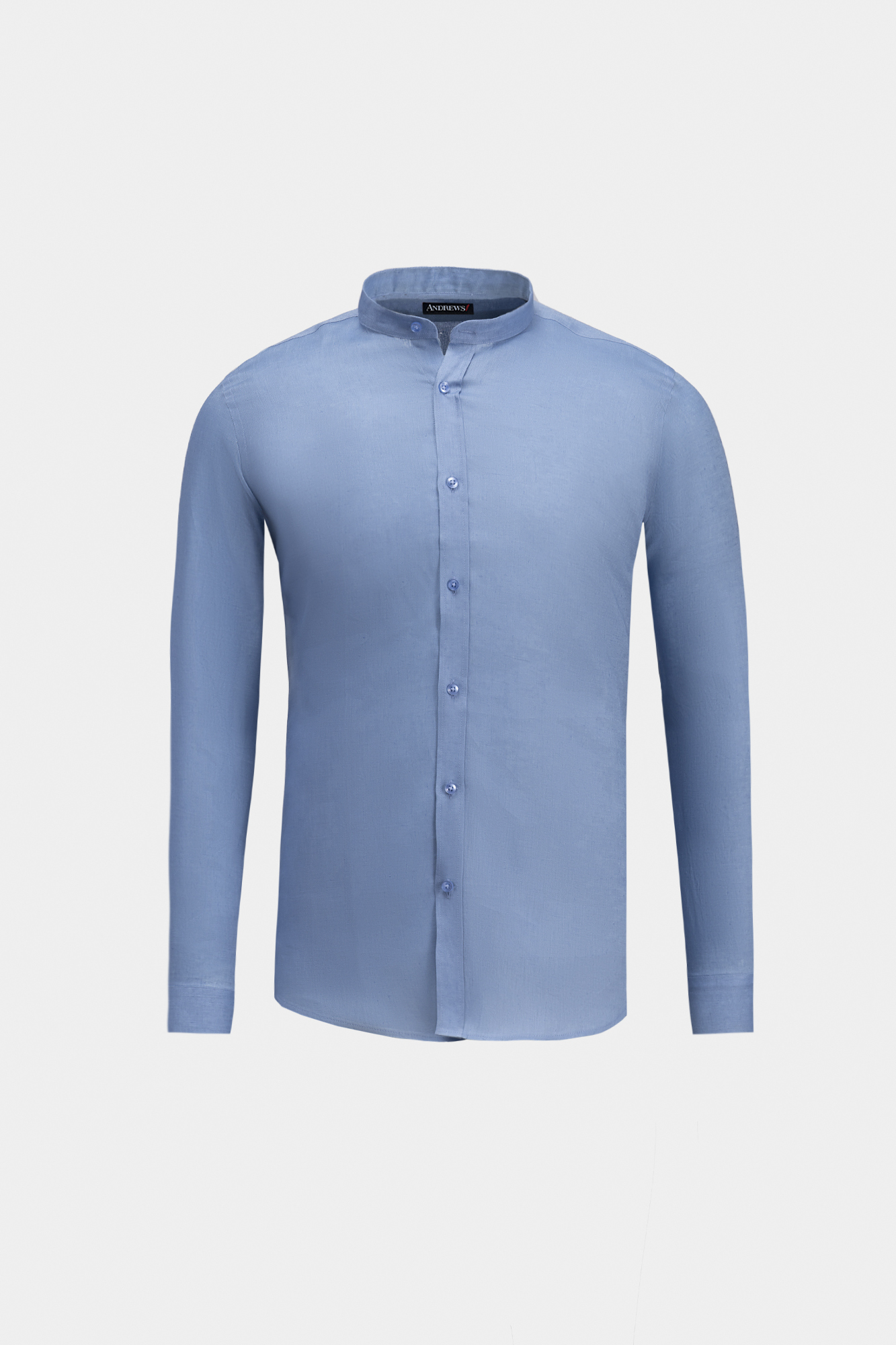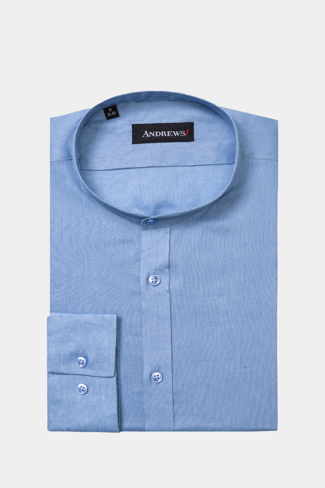 Ленена риза с попска яка. Права кройка. Сезон пролет / лято. Цвят : син. Ленът е една от най-добрите материи за топло време заради своята дишаемост и това, че поддържа тялото прохладно