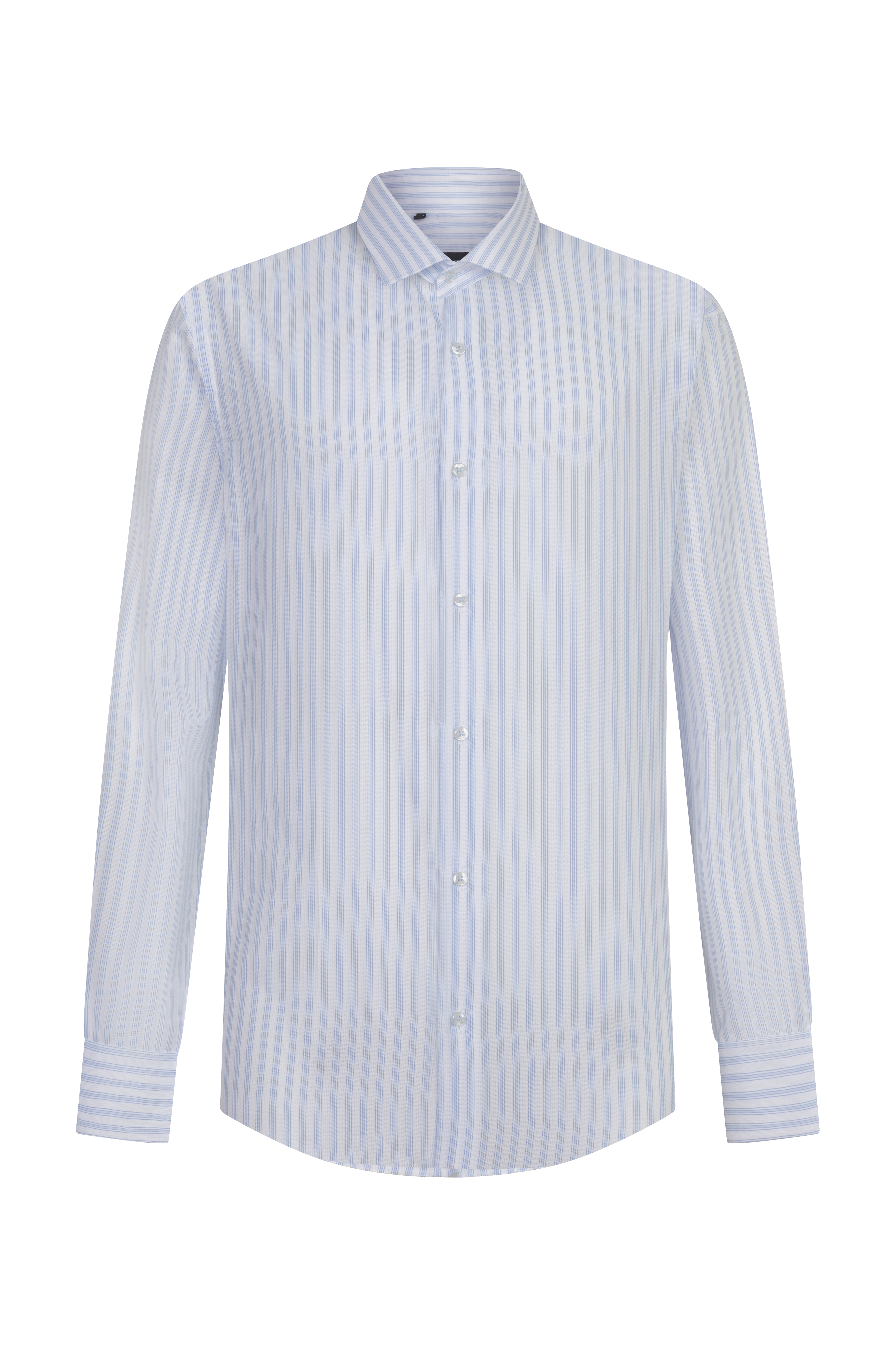 Елегантна риза, съчетаваща класическия бизнес стил с удобството на стандартната кройка. Изчистен, елегантен вид, подходящ за официални и бизнес поводи. Сезон есен/зима. Състав: 100% памук.
