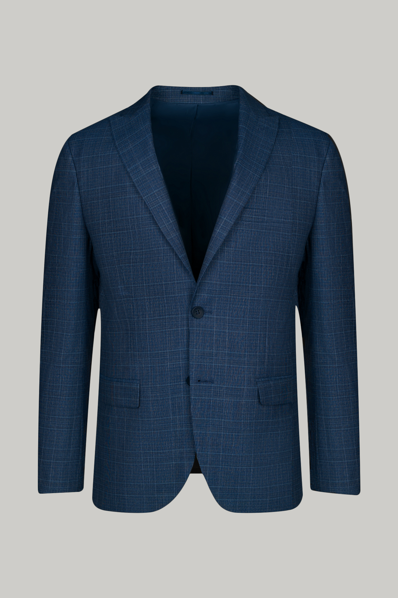 Бизнес сако в тъмносин меланж. Права кройка. Два джоба с капак и един на гърдите. Закопчаване с две копчета. Подходящ за сезон пролет / лято. Състав : 64 % полиестер, 34 % вискоза, 2 % еластан