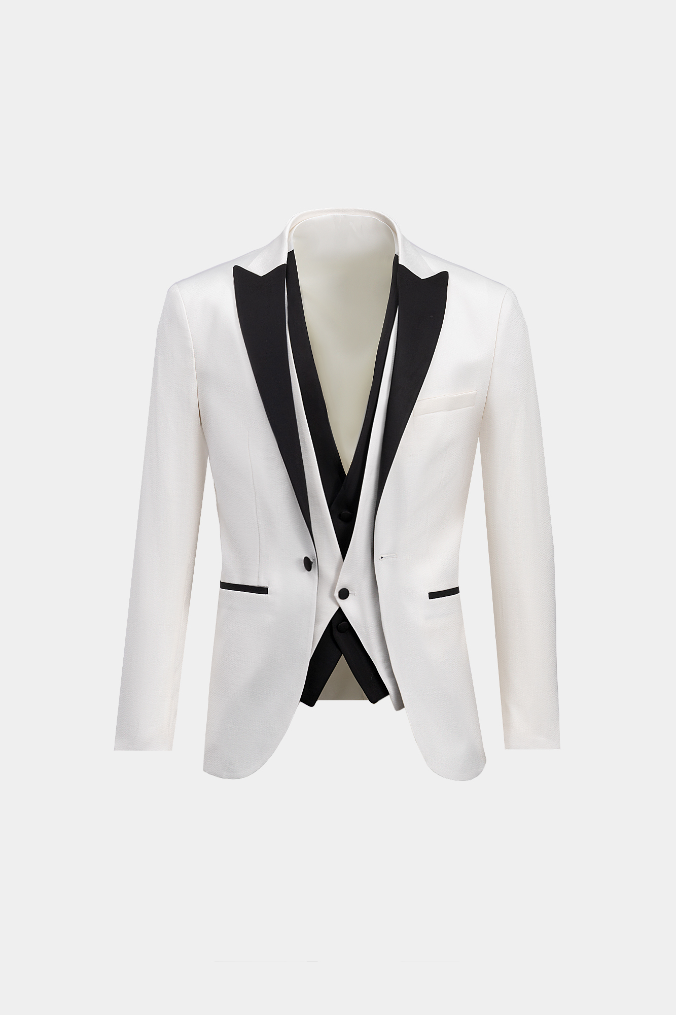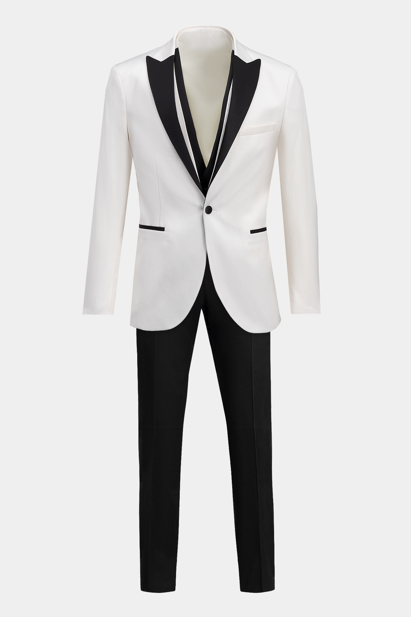 Церемониално сако Ceremony Slim с втален силует, подходящо за всички сезони. Елегантен сатениран ревер и закопчаване с едно копче. С два странични джоба и джоб на гърдите, както и три вътрешни джоба за допълнителна функционалност. Включено елече за завършен и стилен вид. Състав: 47% вискоза, 53% полиестер.