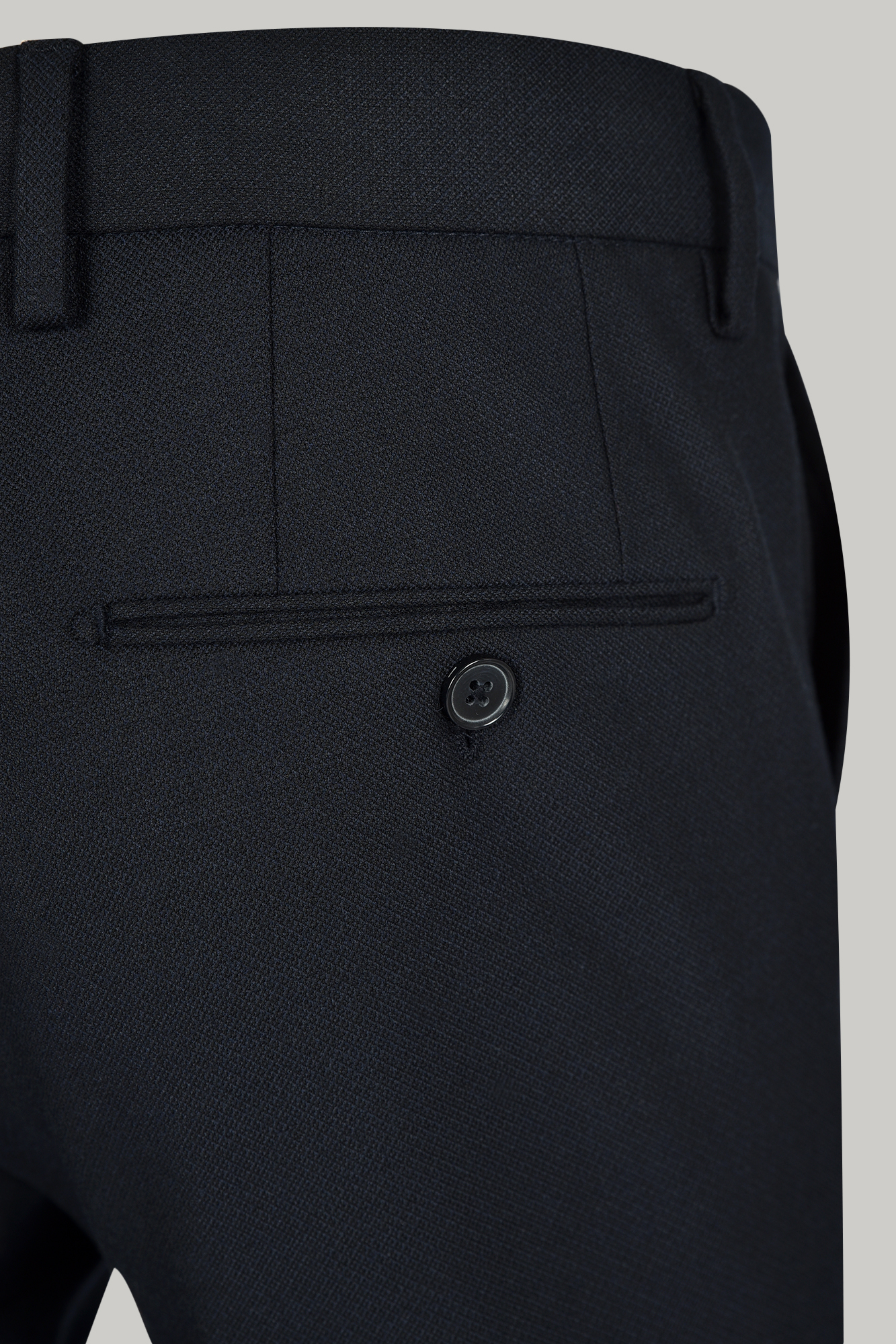 Тъмно сини елегантни спортни мъжки панталони Smart Regular 310002. Изработени от полиестер, еластан и вискоза. Предлагат се в размер 40-50.