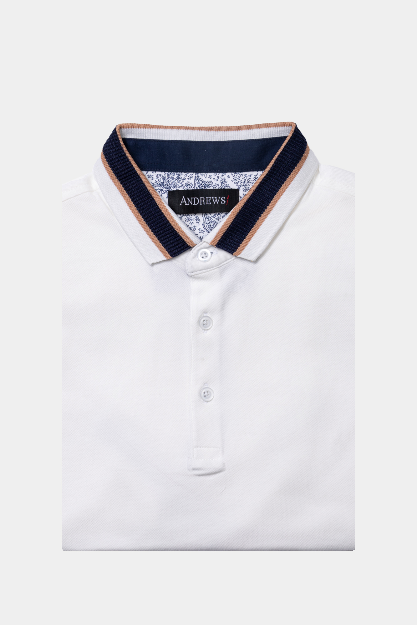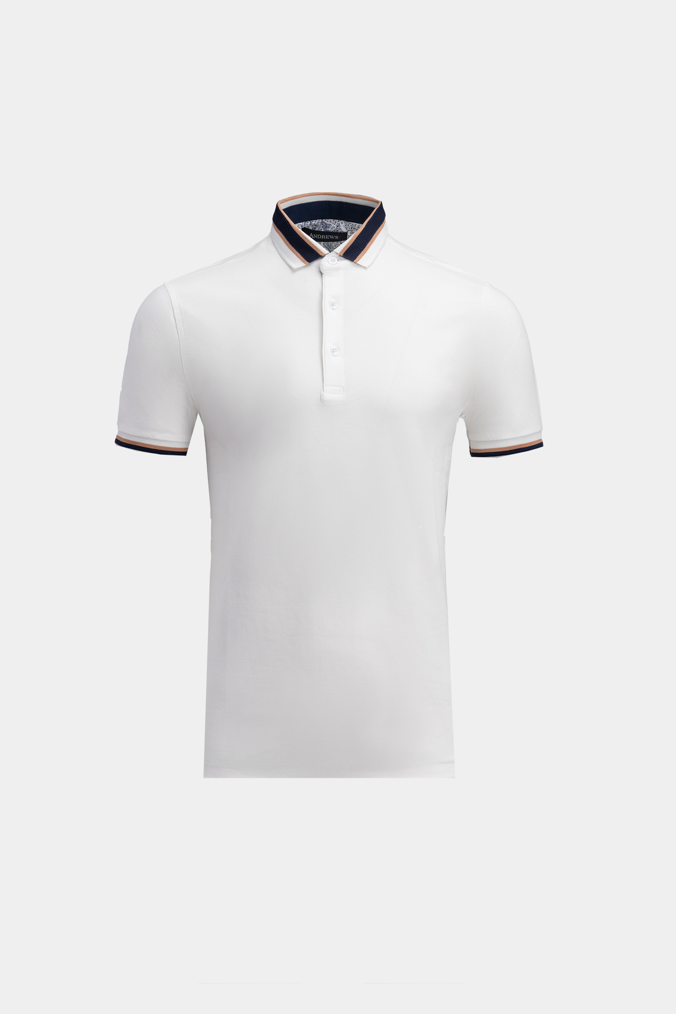Мъжки тишърт с къс ръкав. Цвят екрю с контрастна гарнитура на яката и ръкавите. Закопчаване с три копчета. Състав : 95 % памук, 5 % еластан