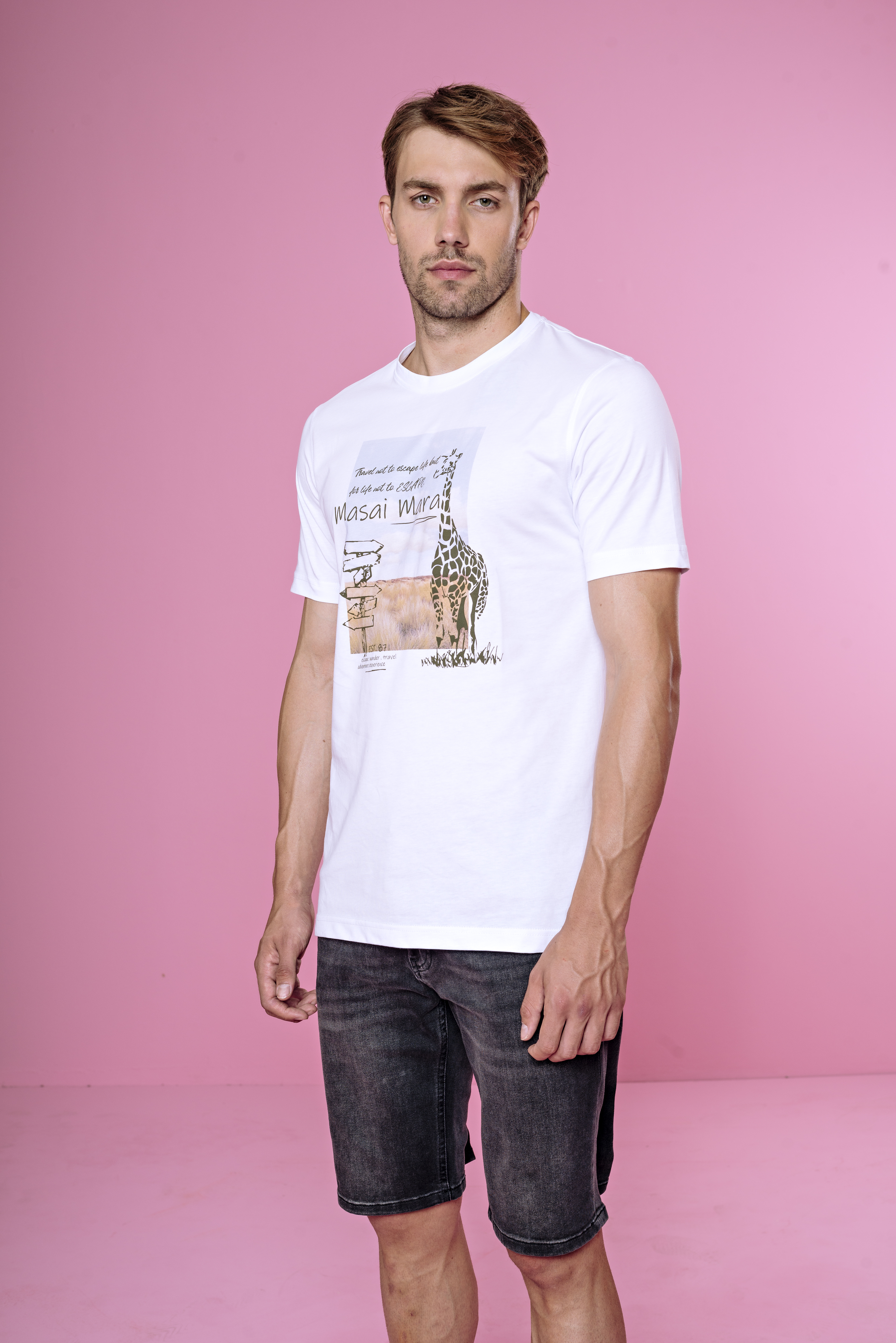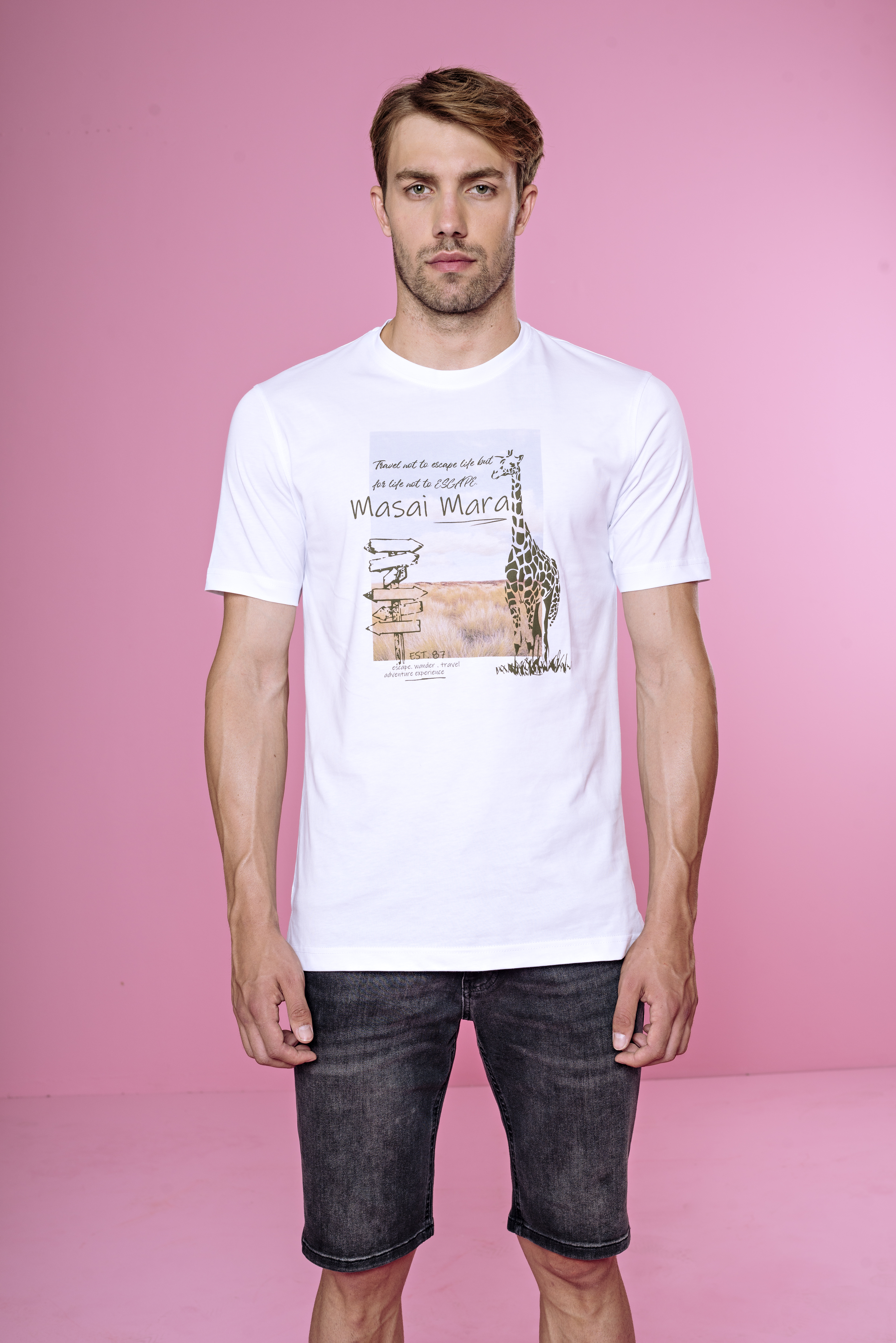 Мъжка тениска с принт Masai Mara. 100 % памук. Небрежен, приключенски стил. Налична в няколко цвята