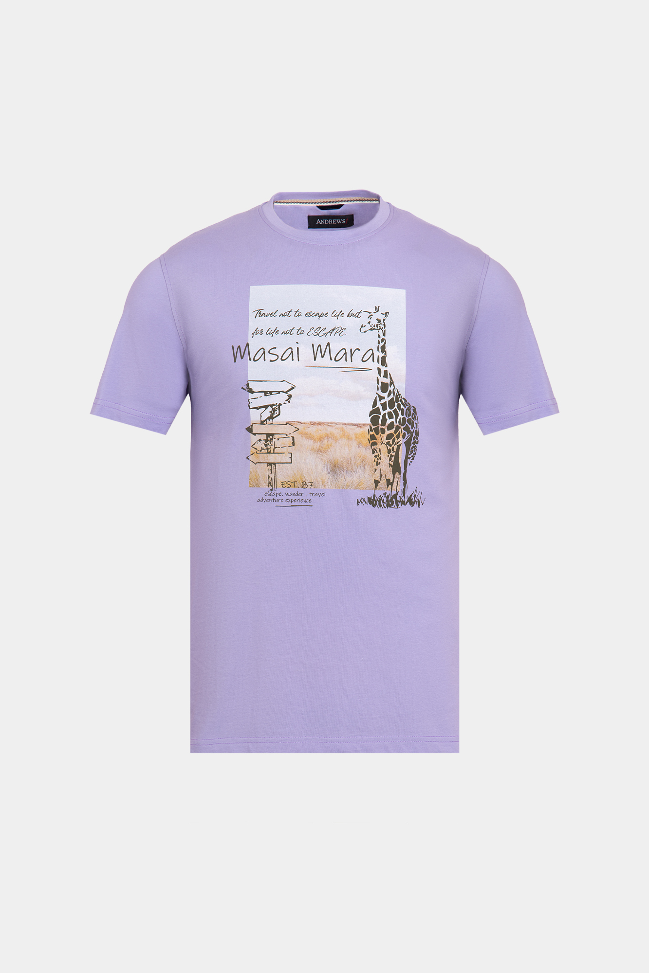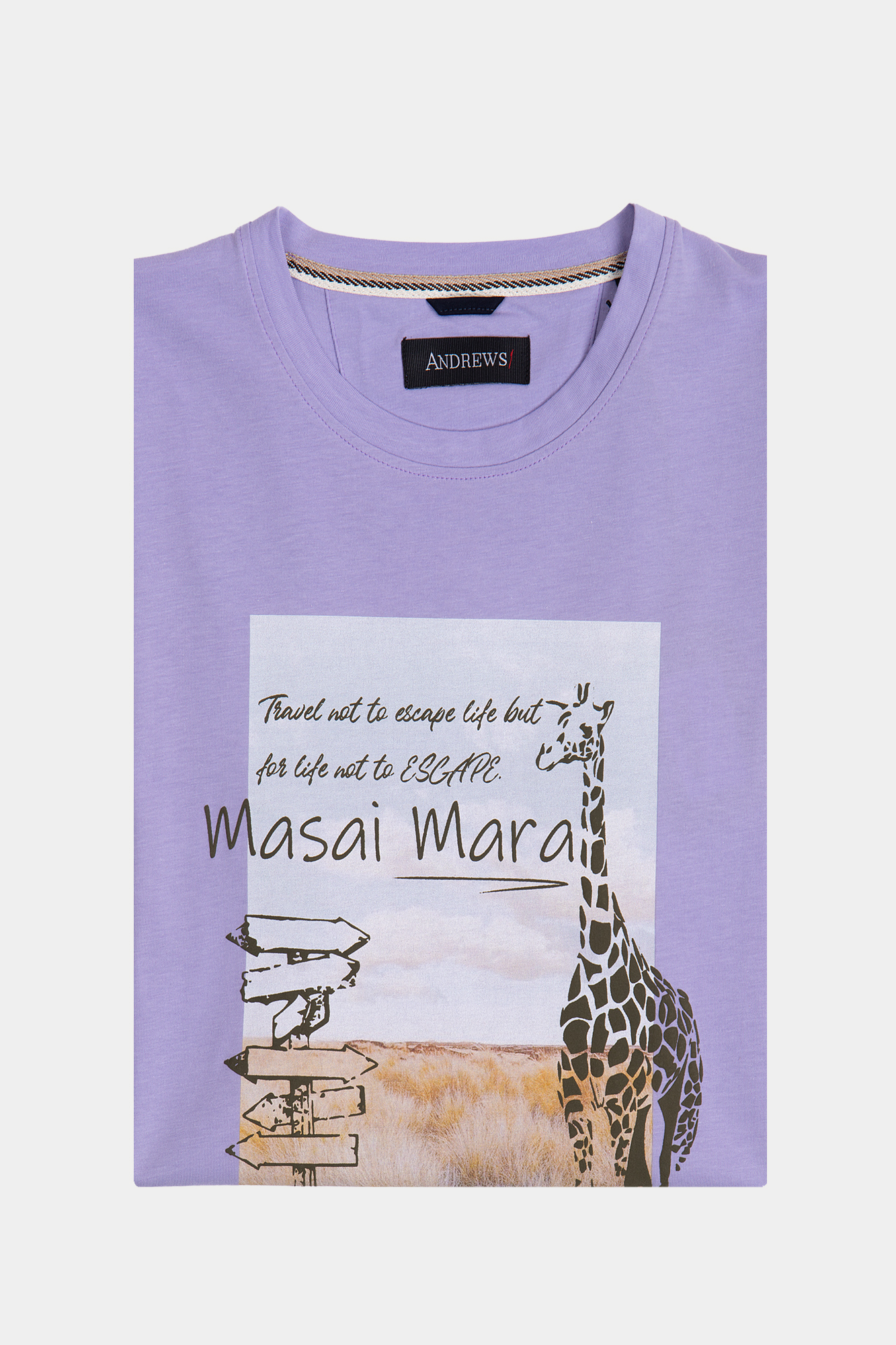 Мъжка тениска с принт Masai Mara. 100 % памук. Небрежен, приключенски стил. Налична в няколко цвята