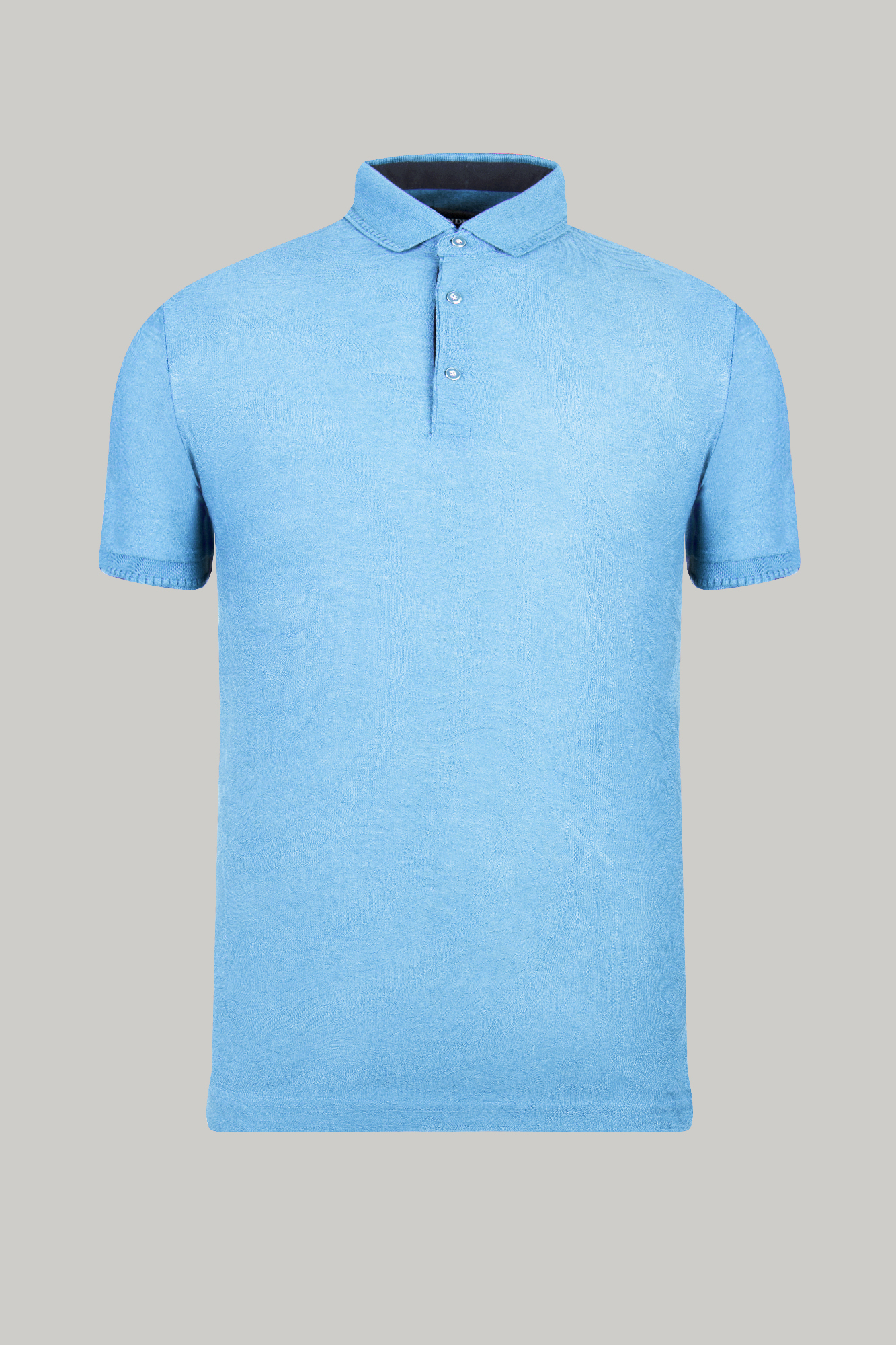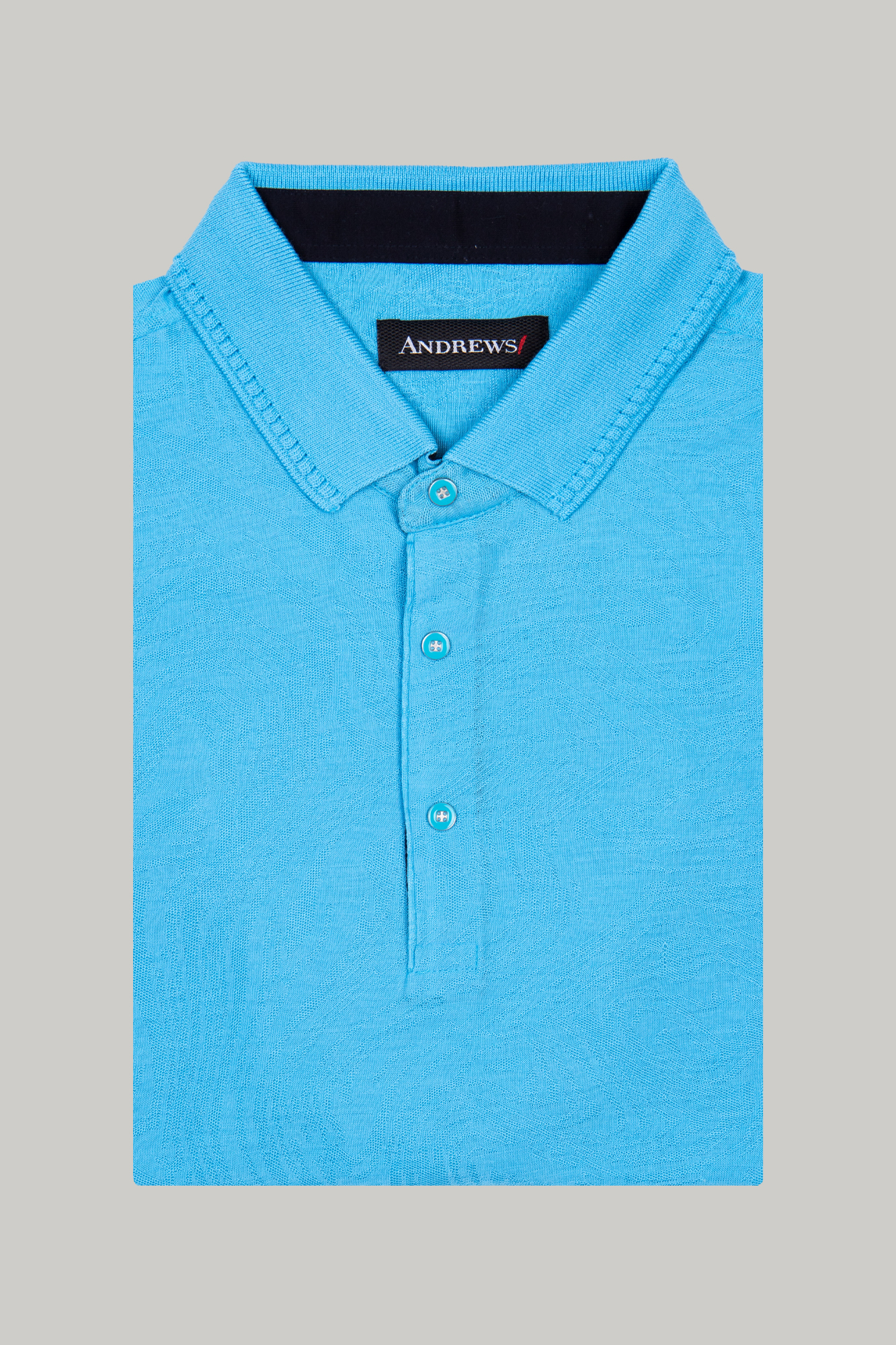 Спортно-елегантен тишърт с къс ръкав. Закопчаване с 3 копчета. Яка. Цвят мави. Състав : 67% полиестер, 33 % вискоза. Гладък и въздухопропусклив благодарение на вискозата и бързосъхнещ заради полиестера