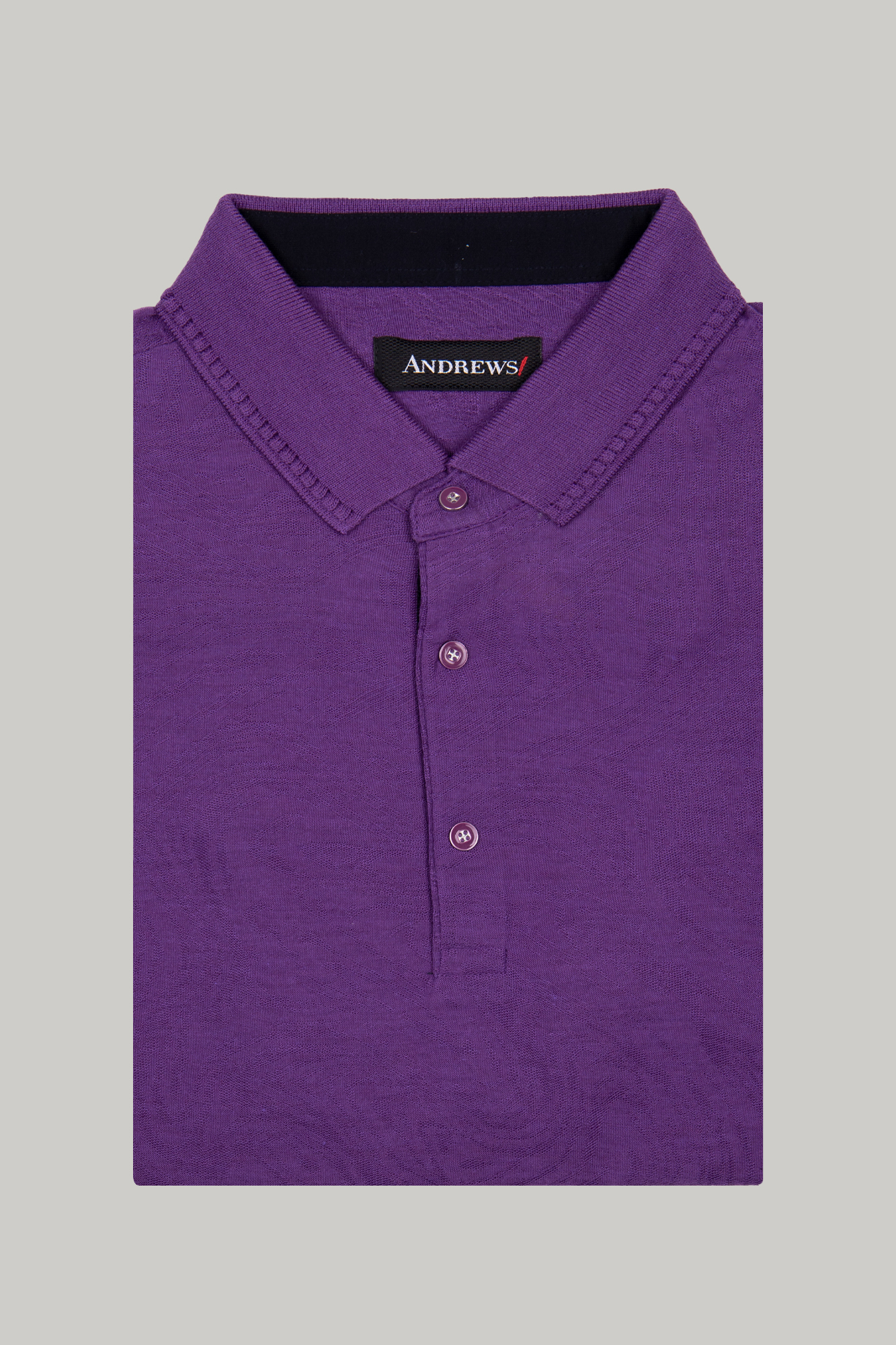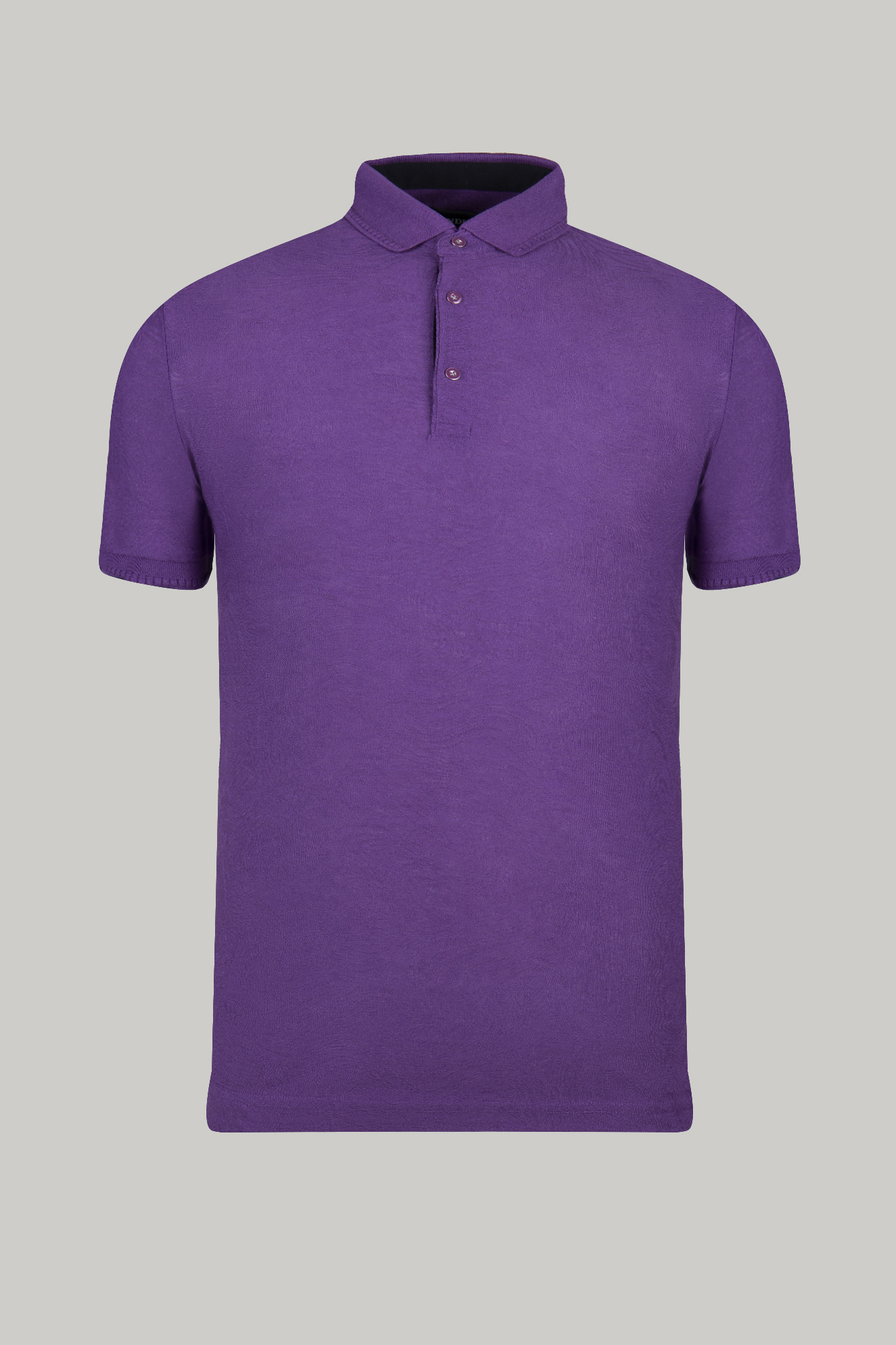 Спортно-елегантен тишърт с къс ръкав. Закопчаване с 3 копчета. Яка. Лилав цвят. Състав : 67% полиестер, 33 % вискоза. Гладък и въздухопропусклив благодарение на вискозата и бързосъхнещ заради полиестер