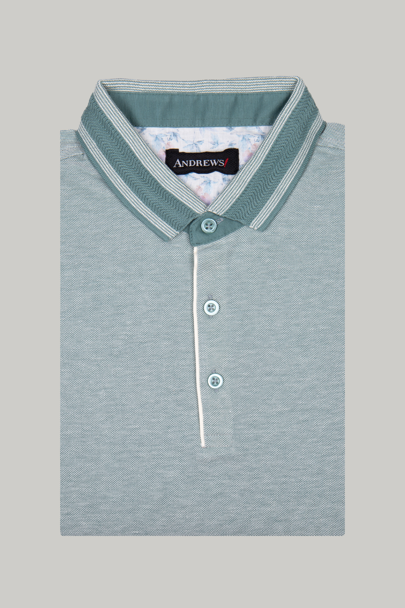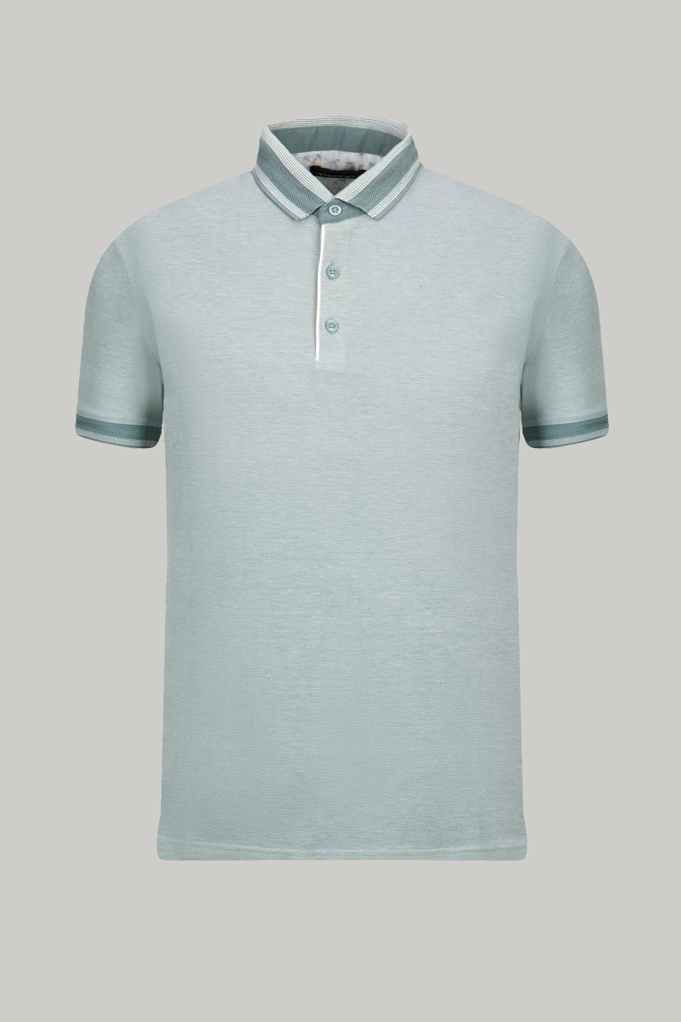 Спортно-елегантен тишърт с къс ръкав от 100% памук. Светлозелен цвят. Контрастна якичка и контрастен завършек на ръкавите. Закопчаване с три копчета.