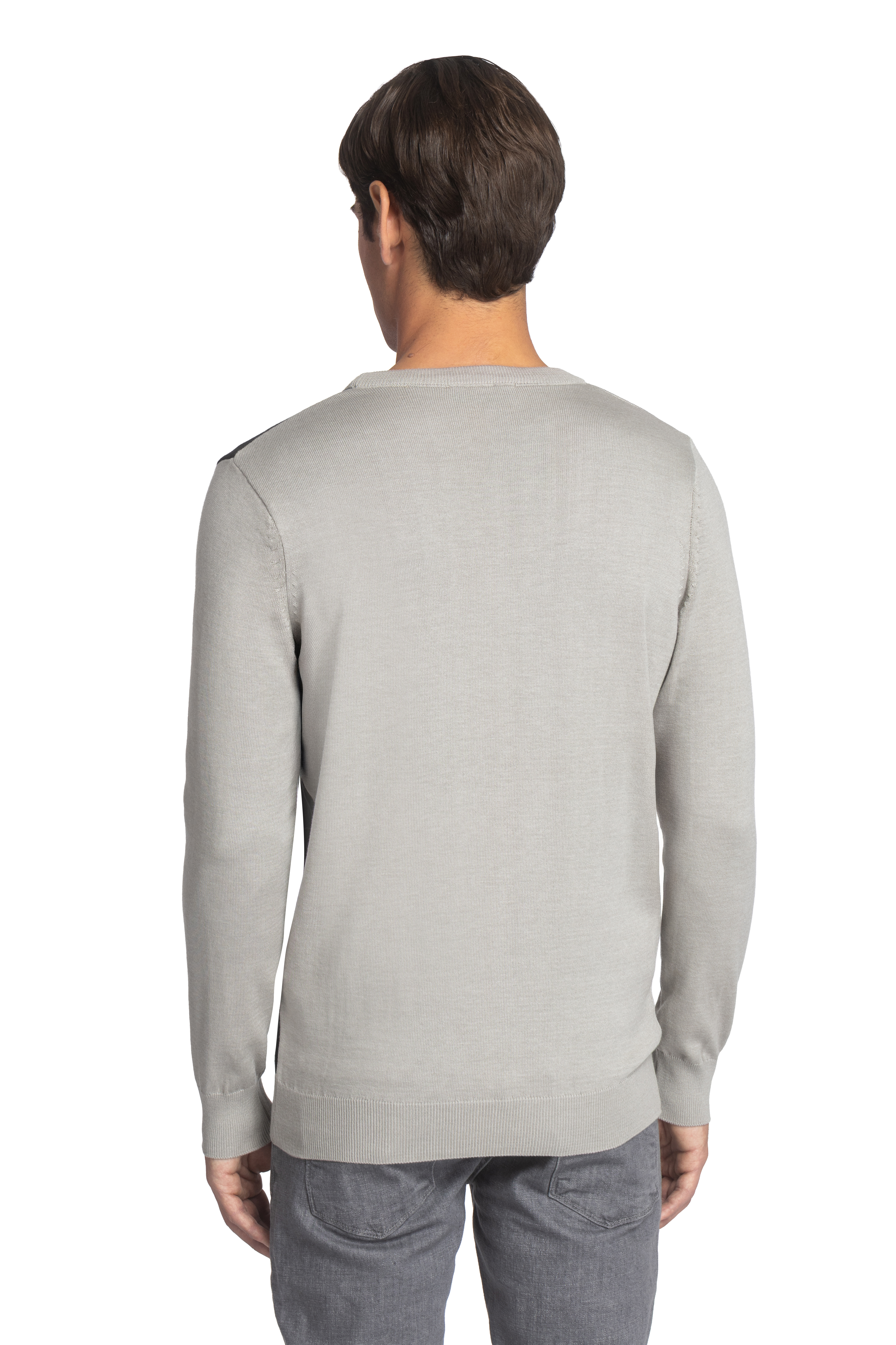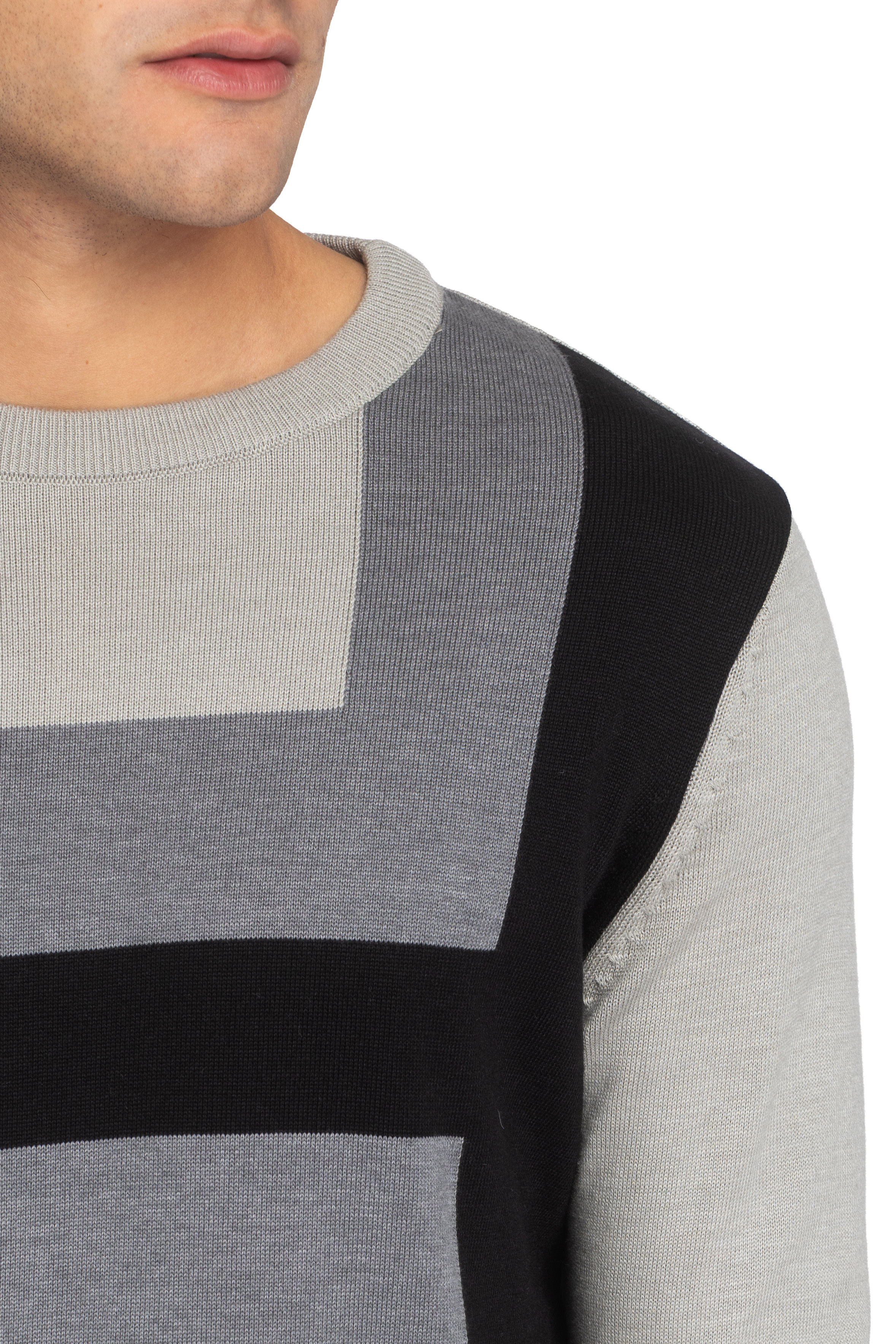 Модерен пуловер с обло деколте и геометричен дизайн в сиво, черно и графитено. Изработен от мека и еластична плетка, осигуряваща комфорт и стил. Перфектен за ежедневна визия с модерен акцент. Сезон: есен/зима. Състав: 50% памук, 50% акрил.