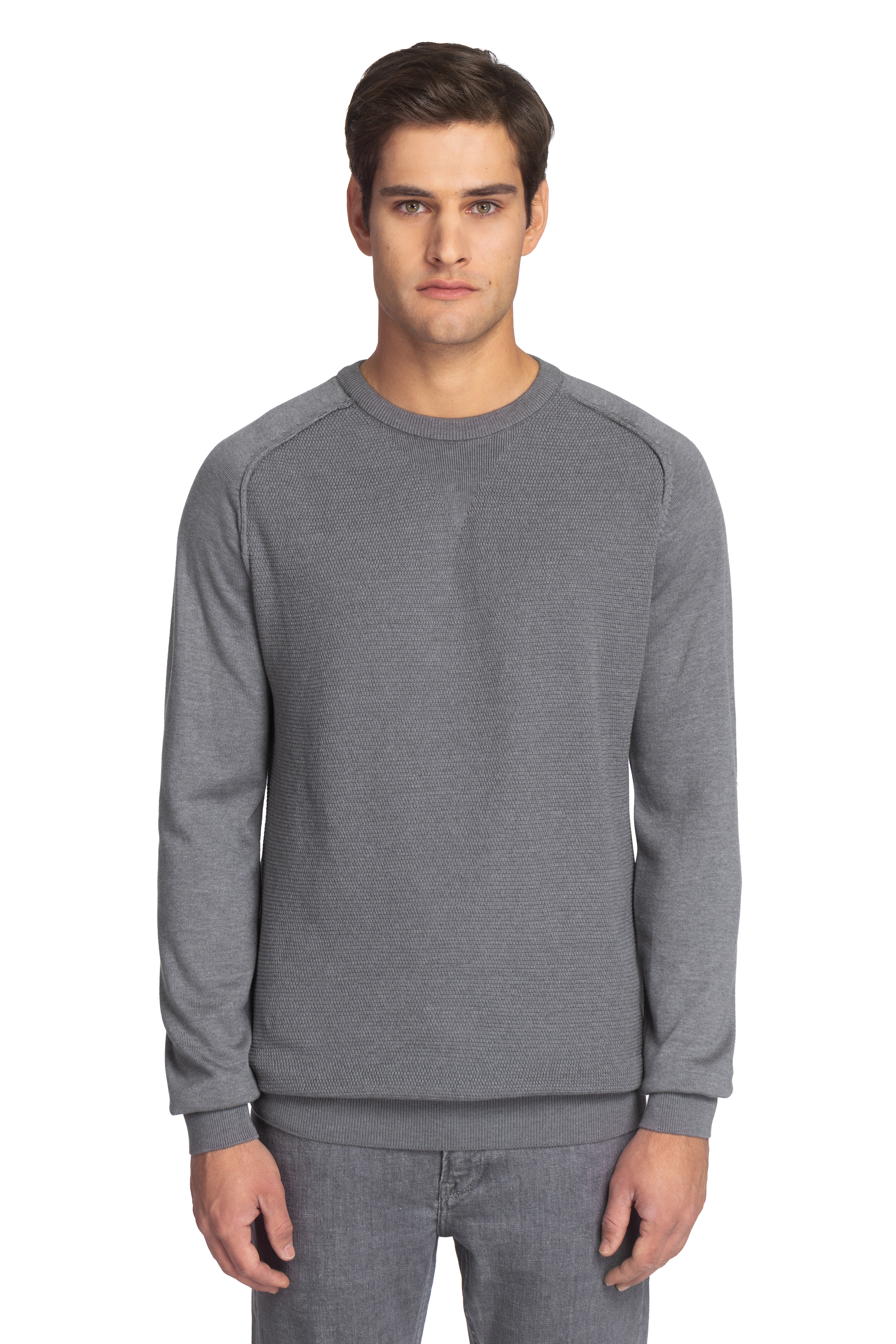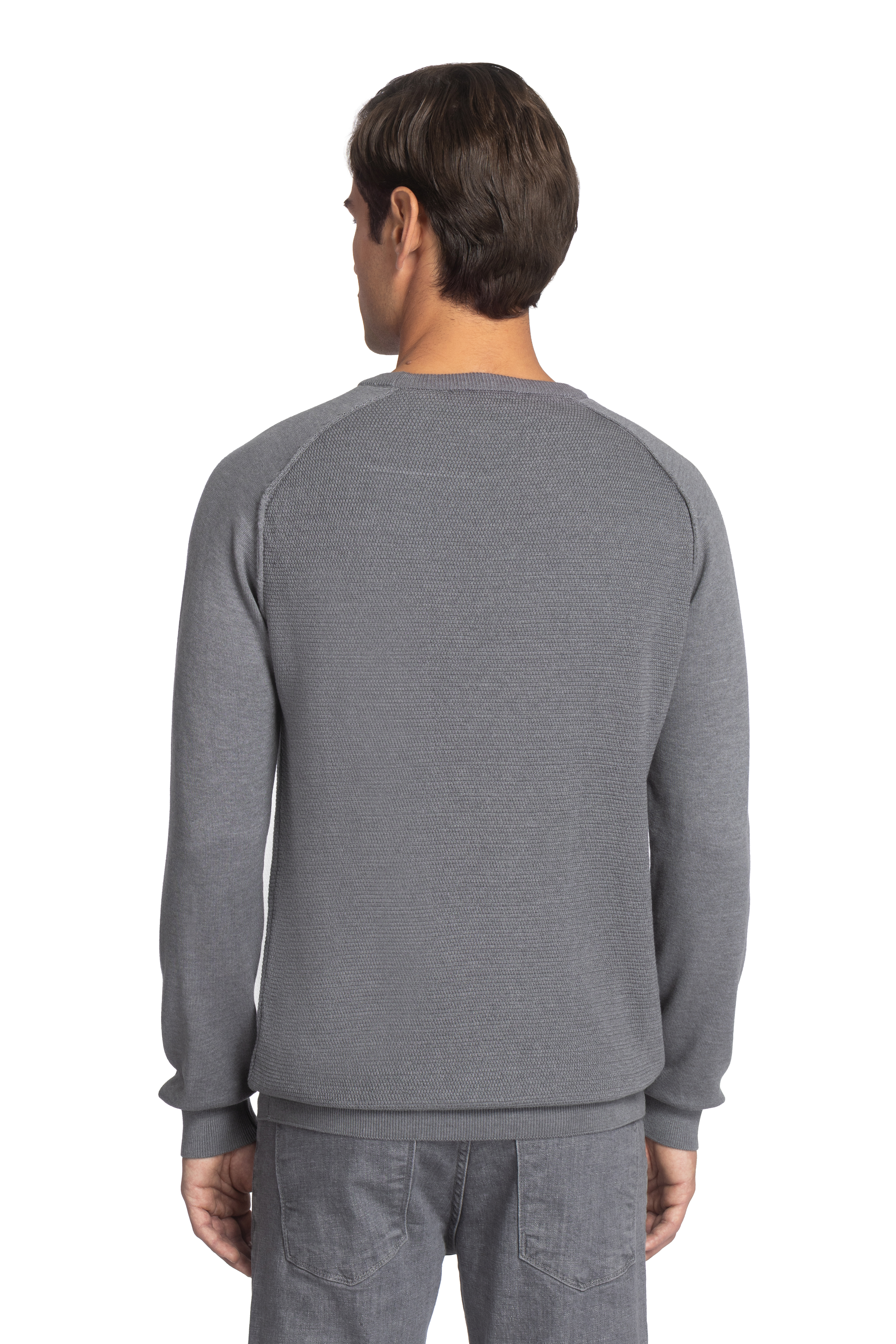 Модерен пуловер с обло деколте и фина структурна плетка. Декоративните шевове по раменете придават спортно-елегантен акцент. Комфортен и стилен избор за smart-casual визия през всеки сезон. Сезон: есен/зима. Състав: 50% памук, 50% акрил.