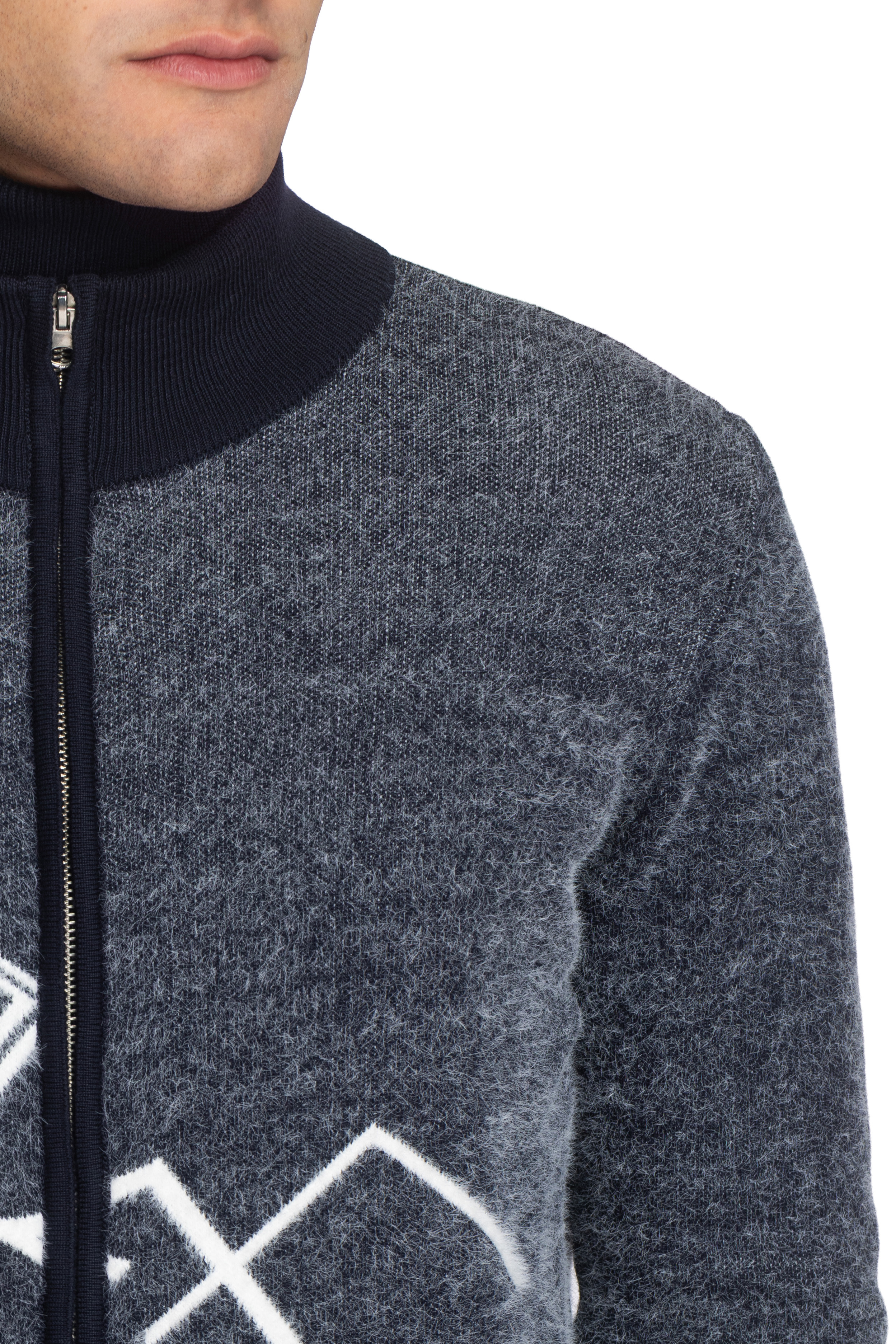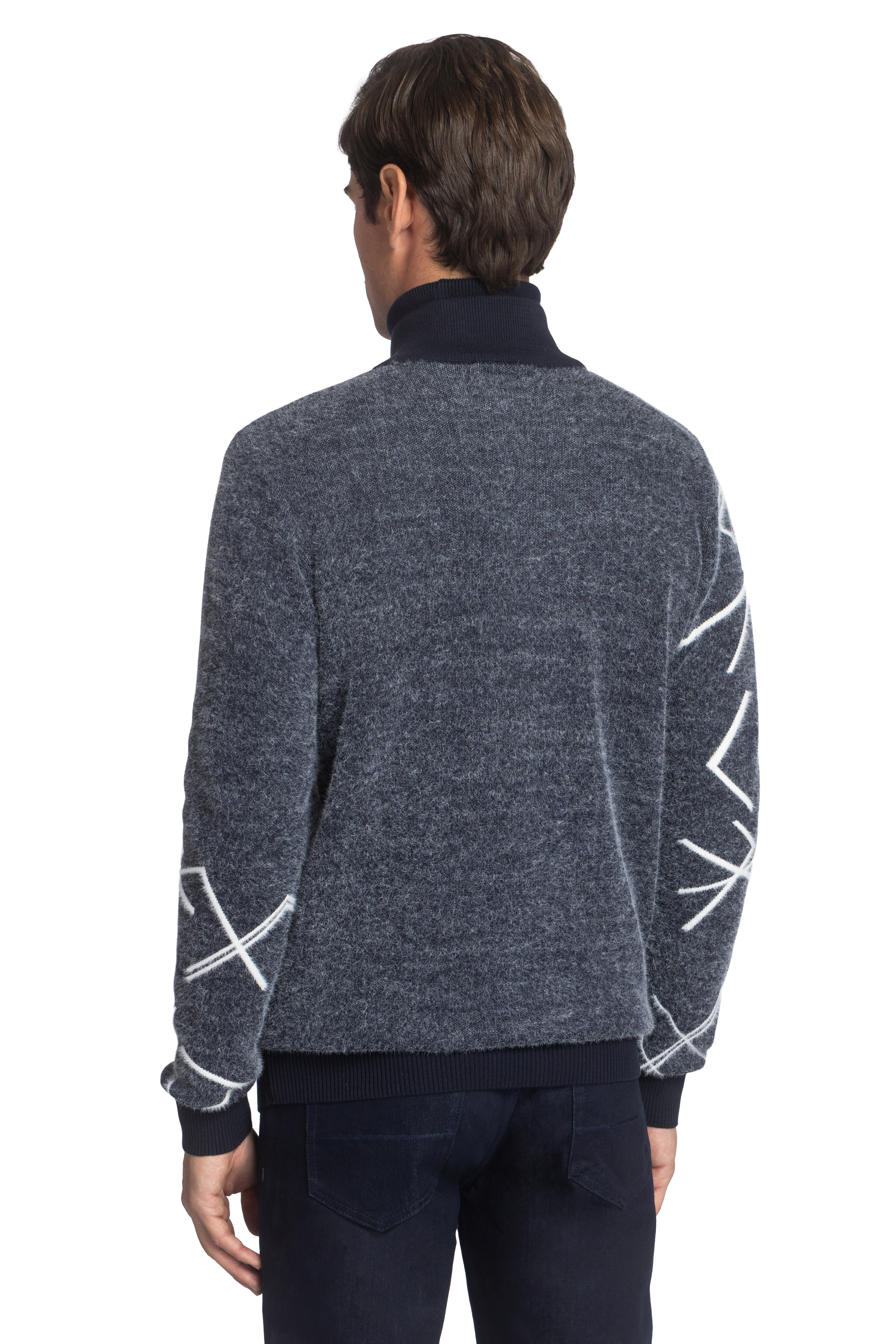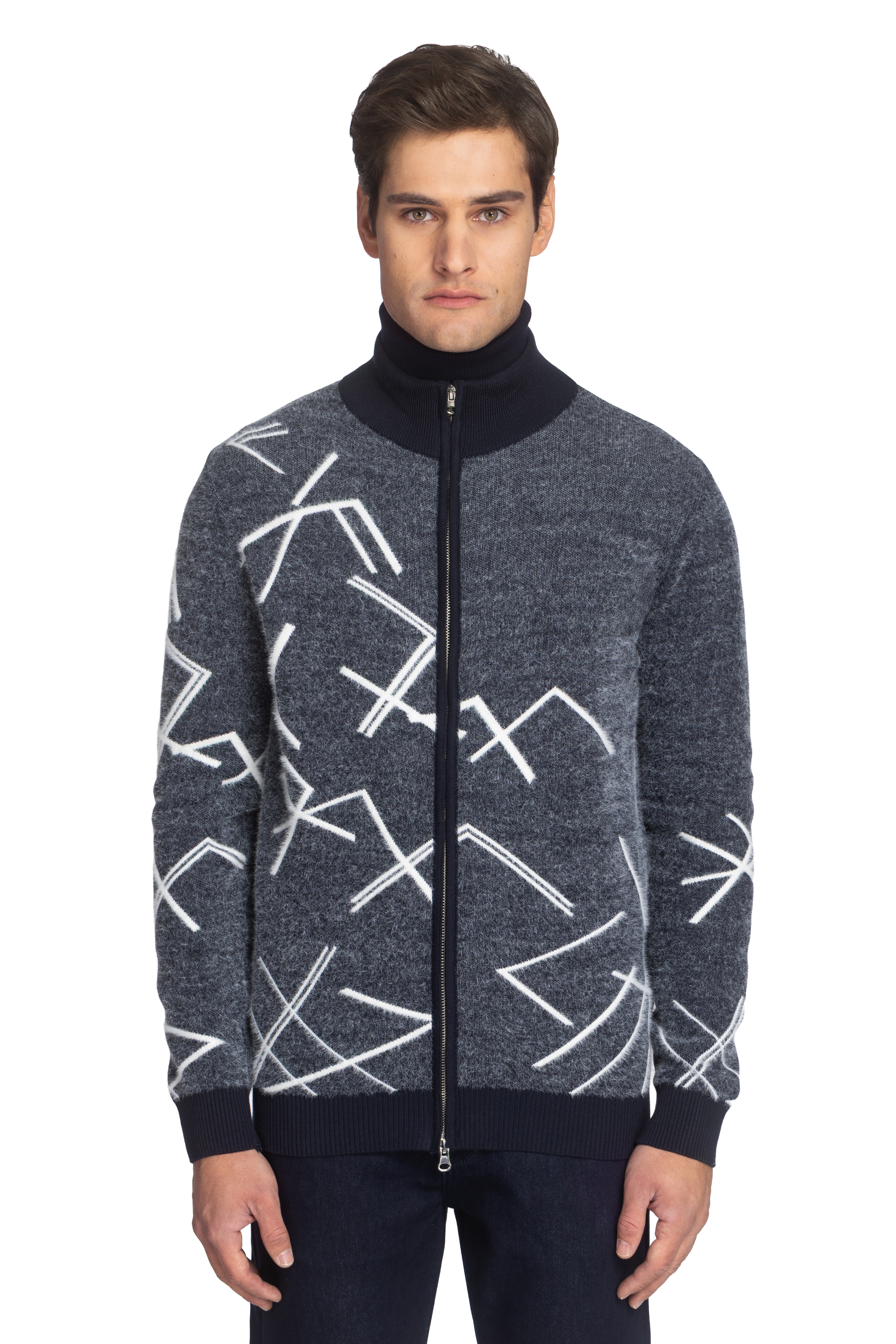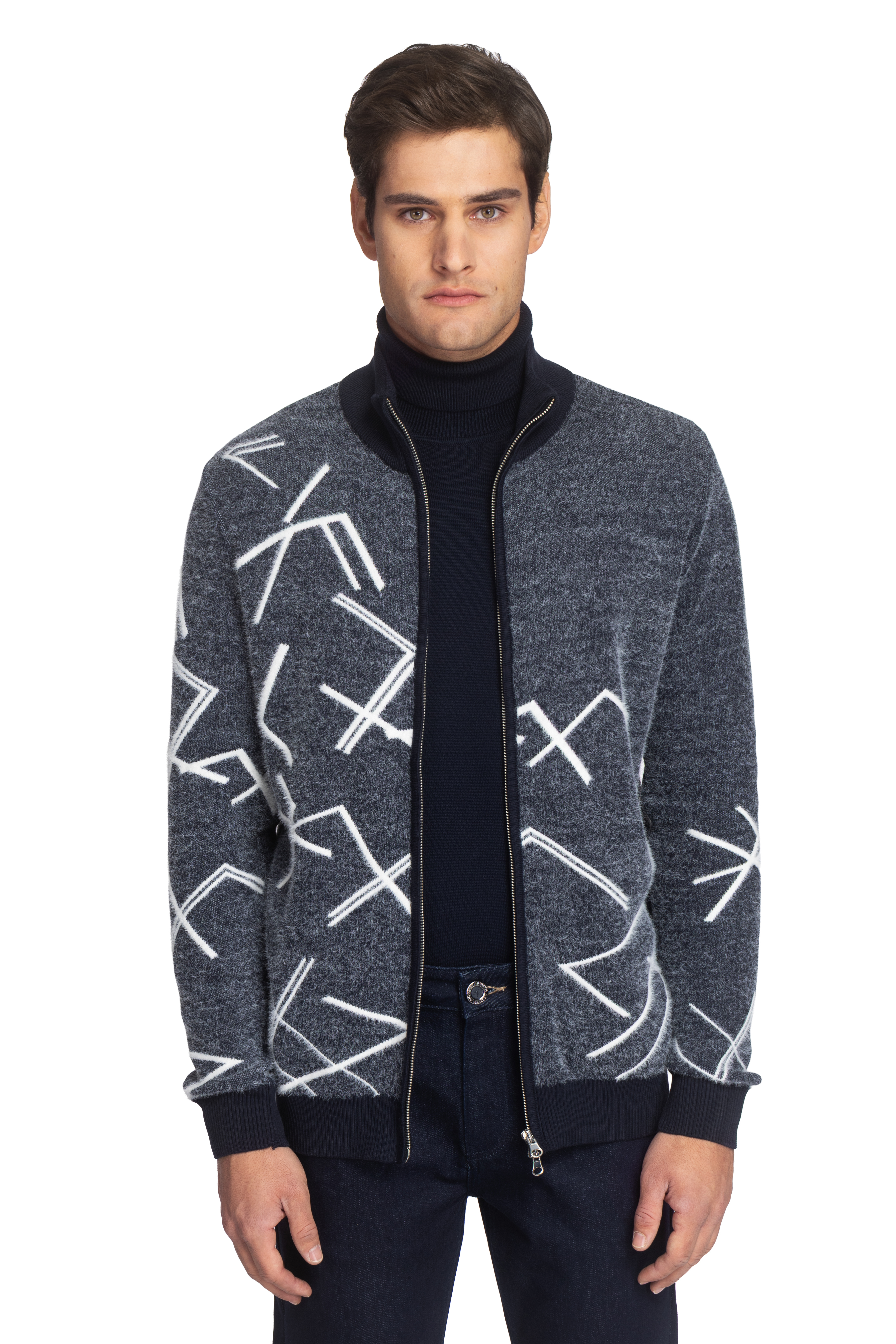 Модерна жилетка с цип и висока яка. Изработена от мека плетка с абстрактен графичен десен, която осигурява комфорт и топлина. Идеален избор за ежедневна визия с артистичен и съвременен характер. Сезон: есен/зима. Състав: 33% сакал, 35% памук, 35% акрил.