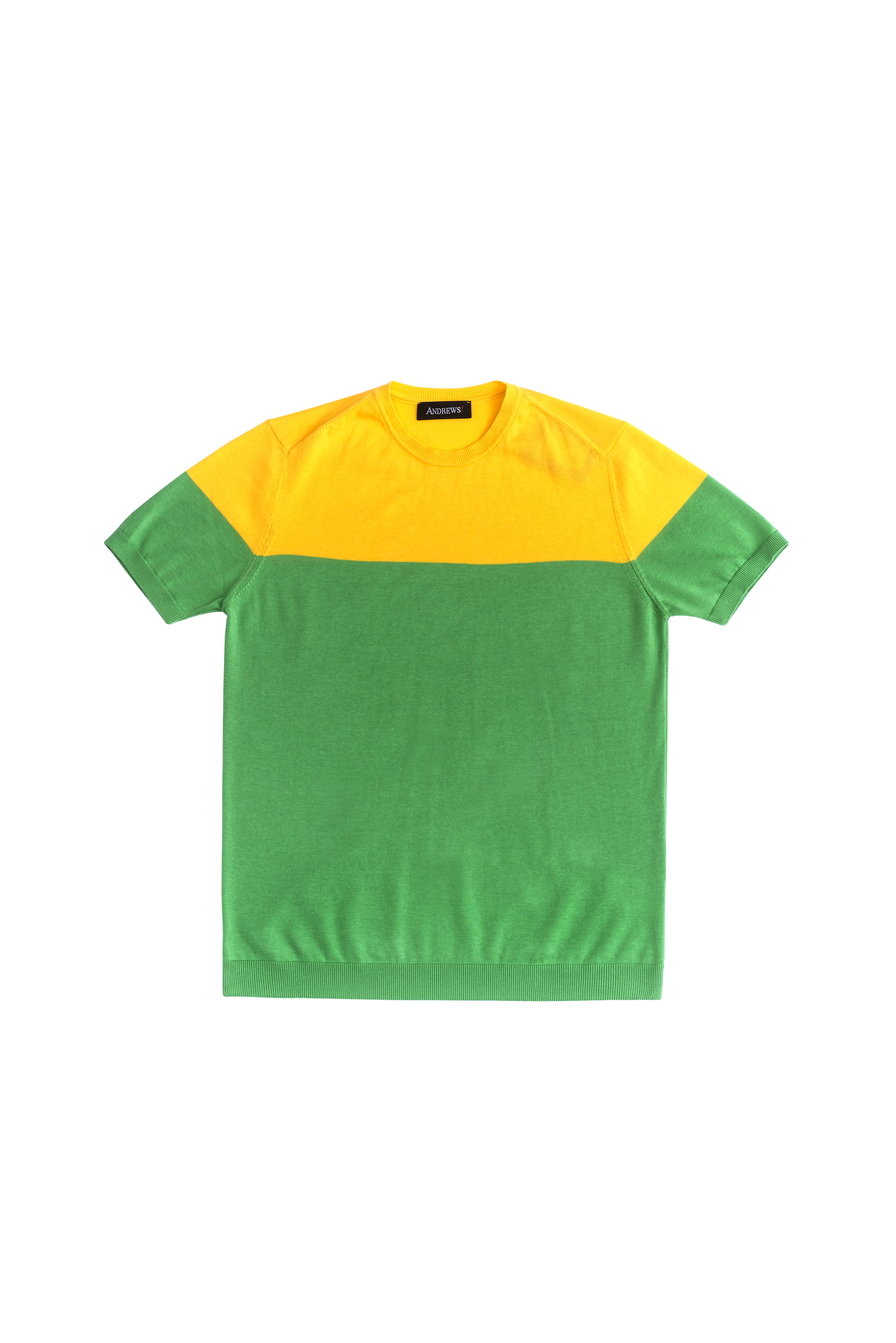 Зелено-жълт ежедневен мъжки пуловер с къс ръкав Casual 62145. Изработен от памук. Налични размери М, L, XL, XXL.