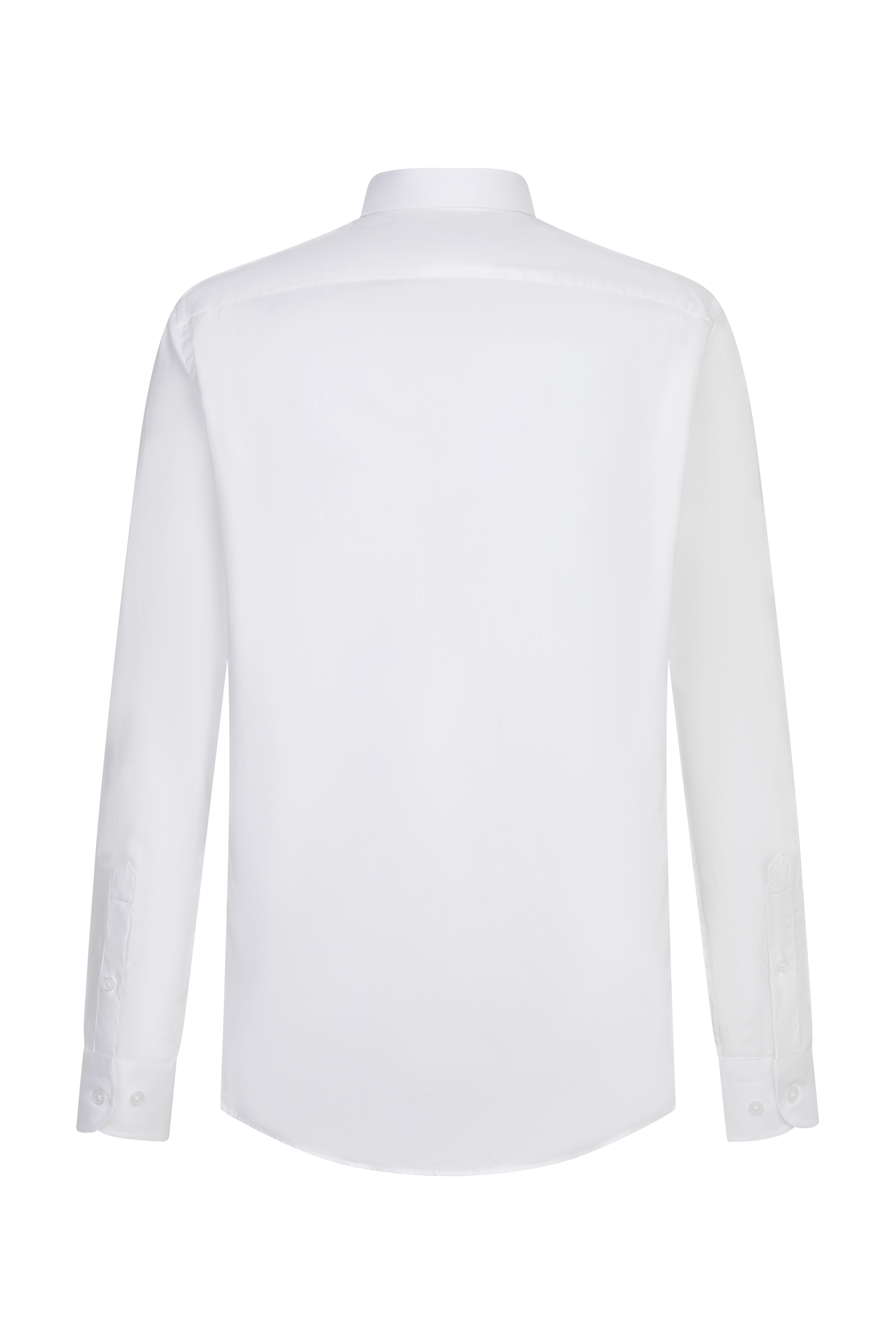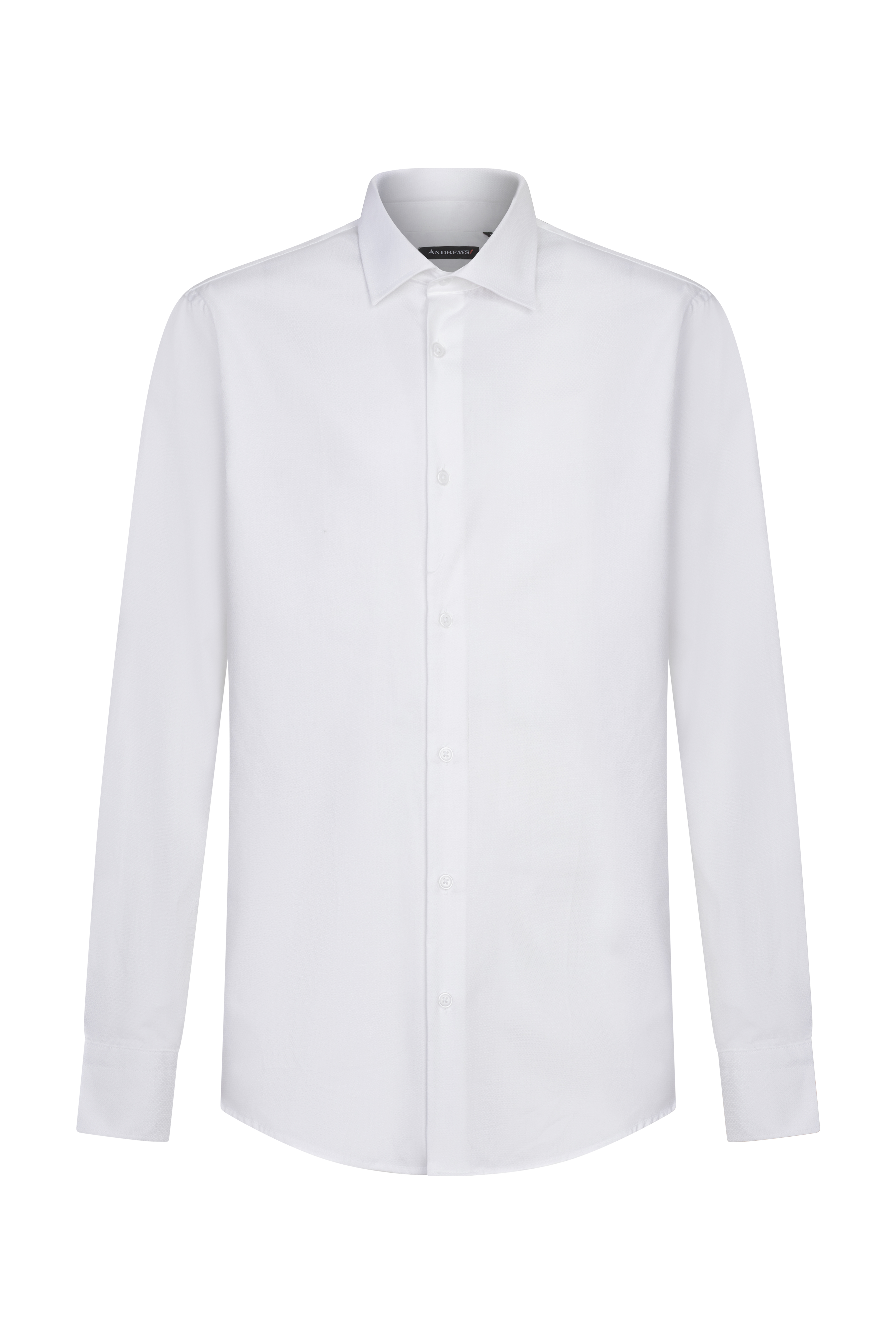Елегантна риза в бизнес стил с удобна кройка, идеална за офиса, бизнес срещи и официални поводи. Подходяща за сезон есен/зима. Състав: 100% памук.