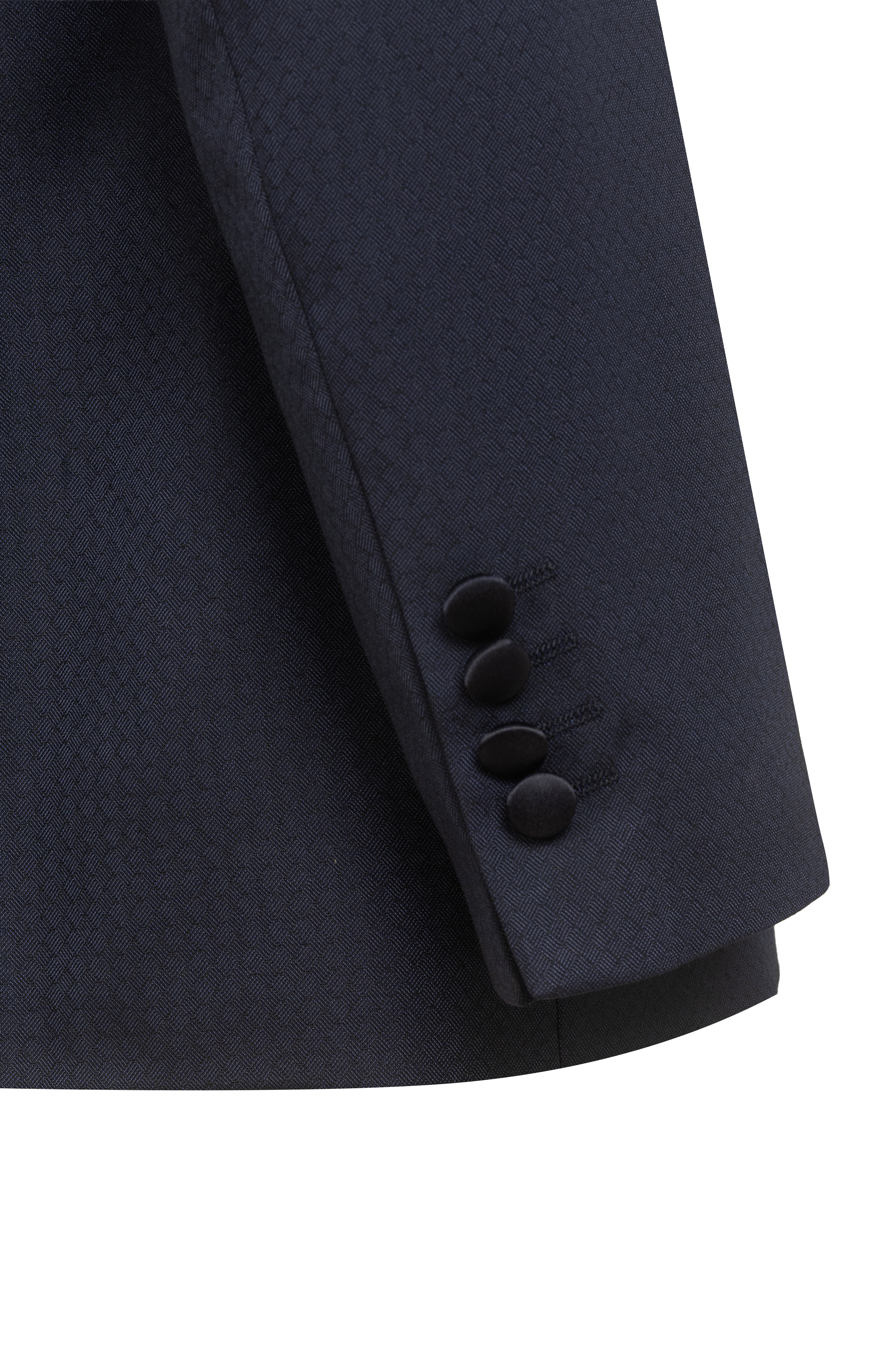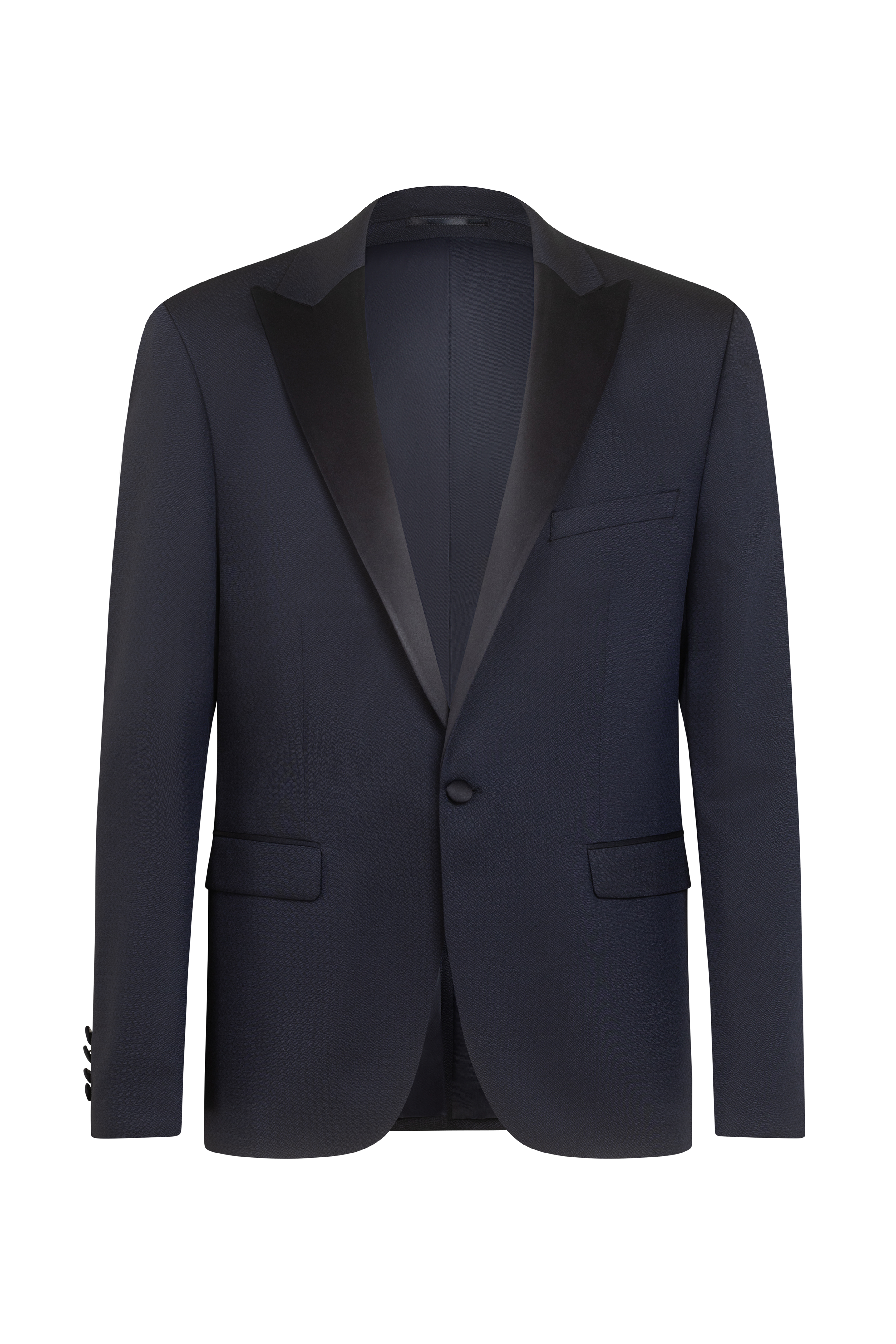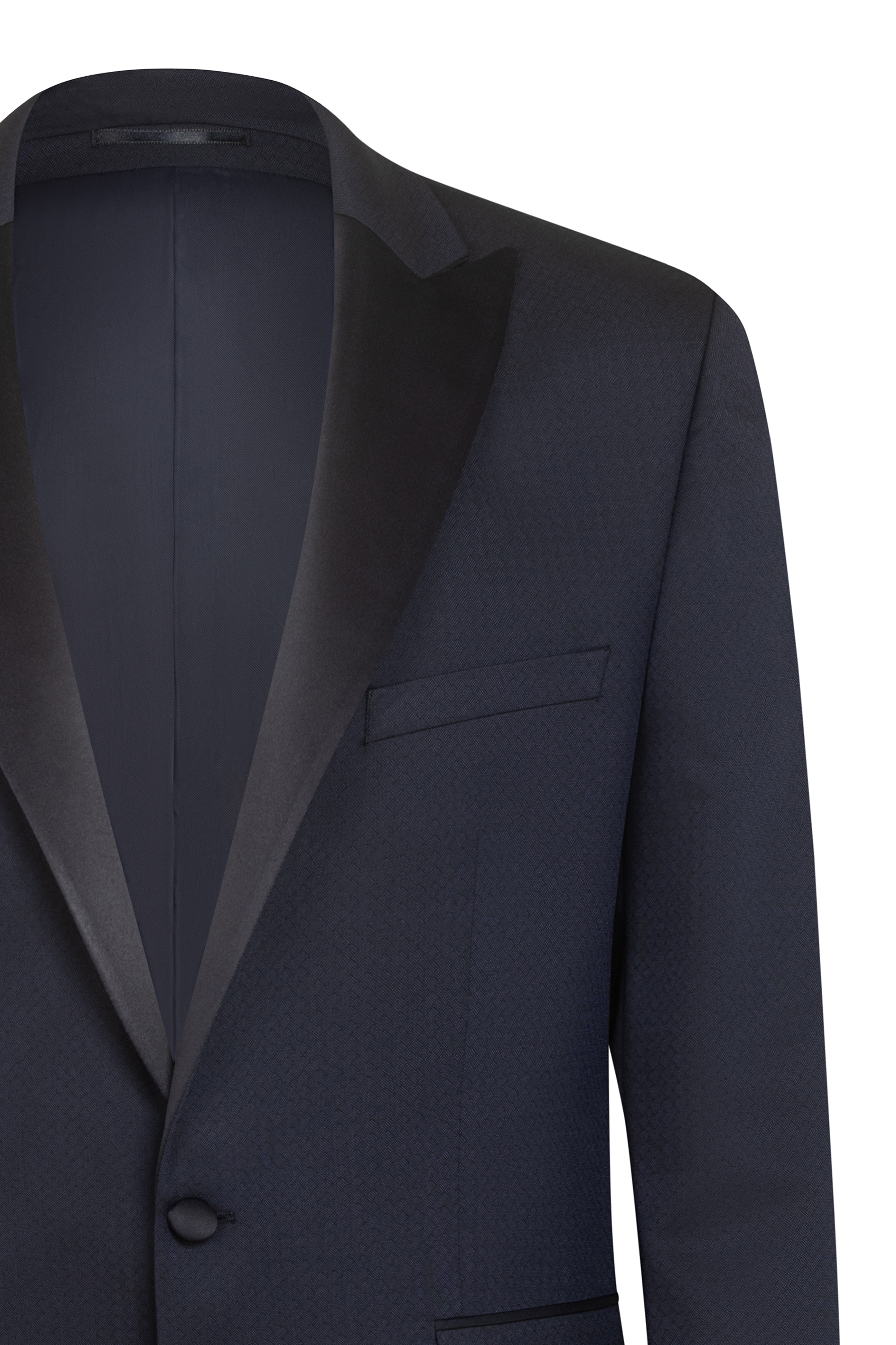 Церемониално сако с вталена кройка. Сатениран ревер. Закопчаване с едно копче, два странични джоба и джоб на гърдите. Подходящо за всички сезони. Състав: 57% полиестер и 43% вискоза.